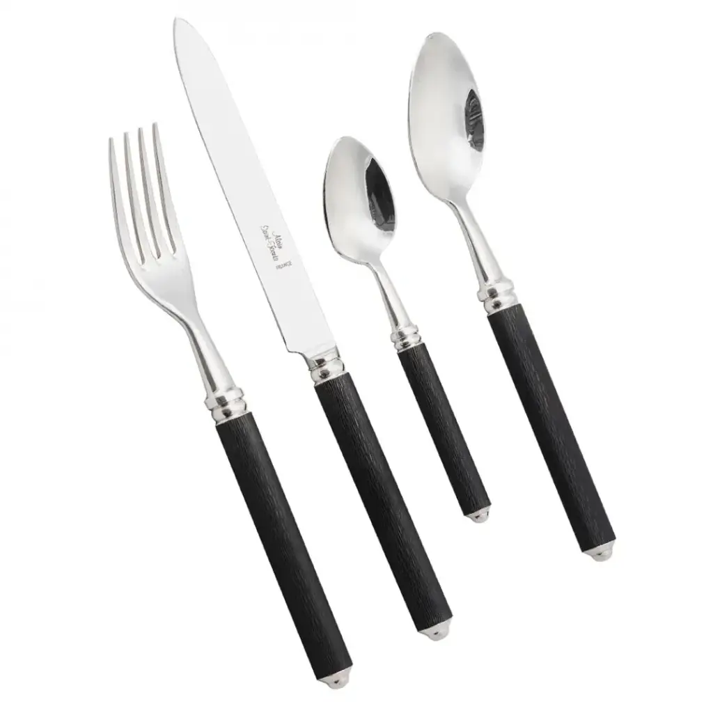 Alain Saint Joanis is a family-owned company that has been creating and manufacturing fine flatware in the purest tradition of French cutlery since 1876. These top-of-the-line collections are made with the finest quality silverplate and 18/10 stainless steel, with handles handcrafted from authentic, raw materials such as exotic woods, resins and enamels. All Alain Saint Joanis flatware is hand-assembled and hand-polished in France, and is dishwasher safe. Five-piece setting includes dinner knife, dinner fork, salad fork, soup spoon, and tea spoon.
