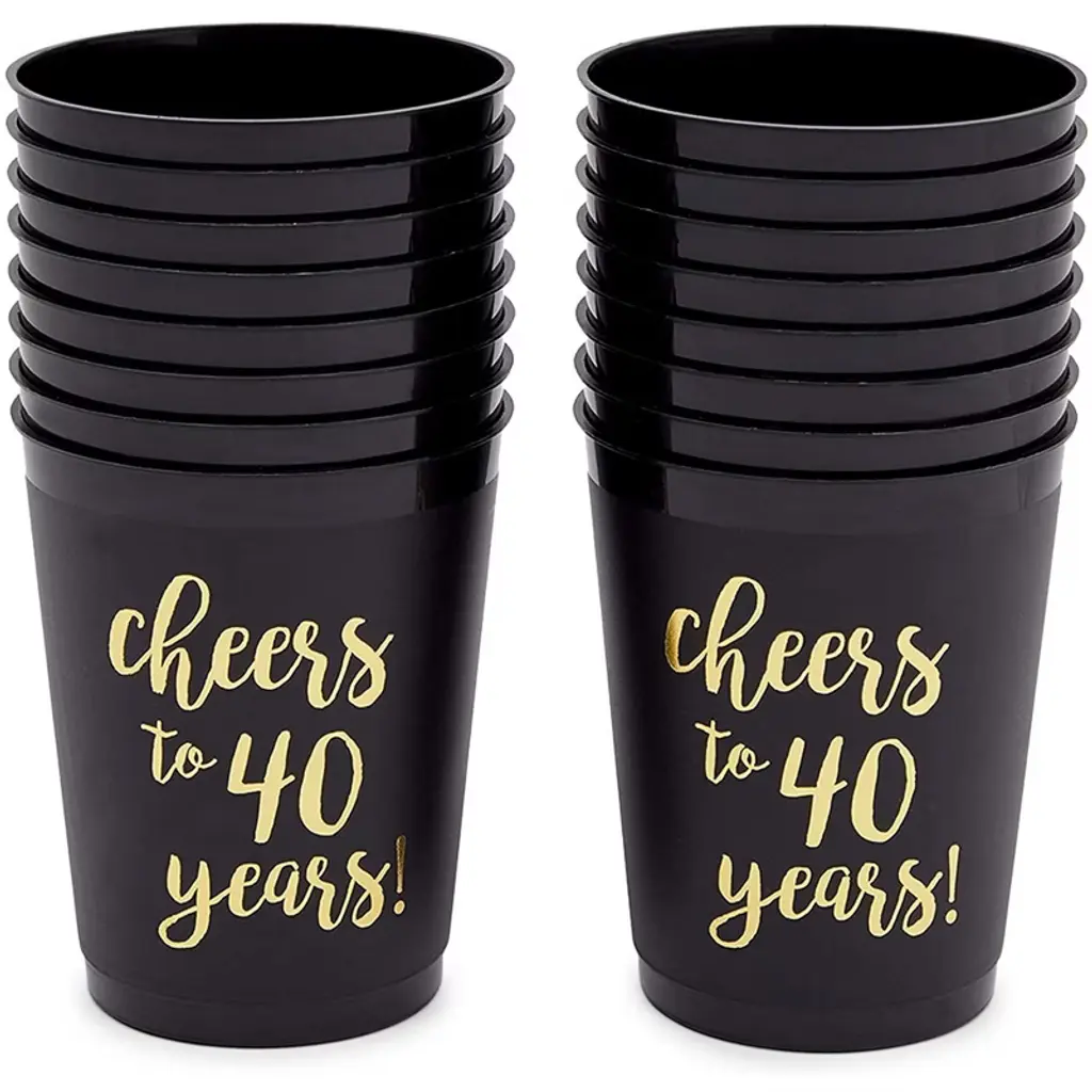 Sparkle And Bash 16 Pack 40 Birthday Party Cups For Cheers To 40 Years, 40th Birthday Decorations For Men And Women, 16 Oz