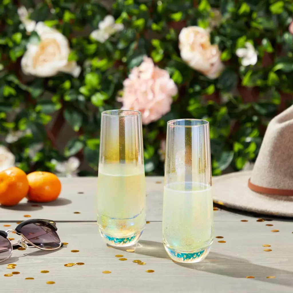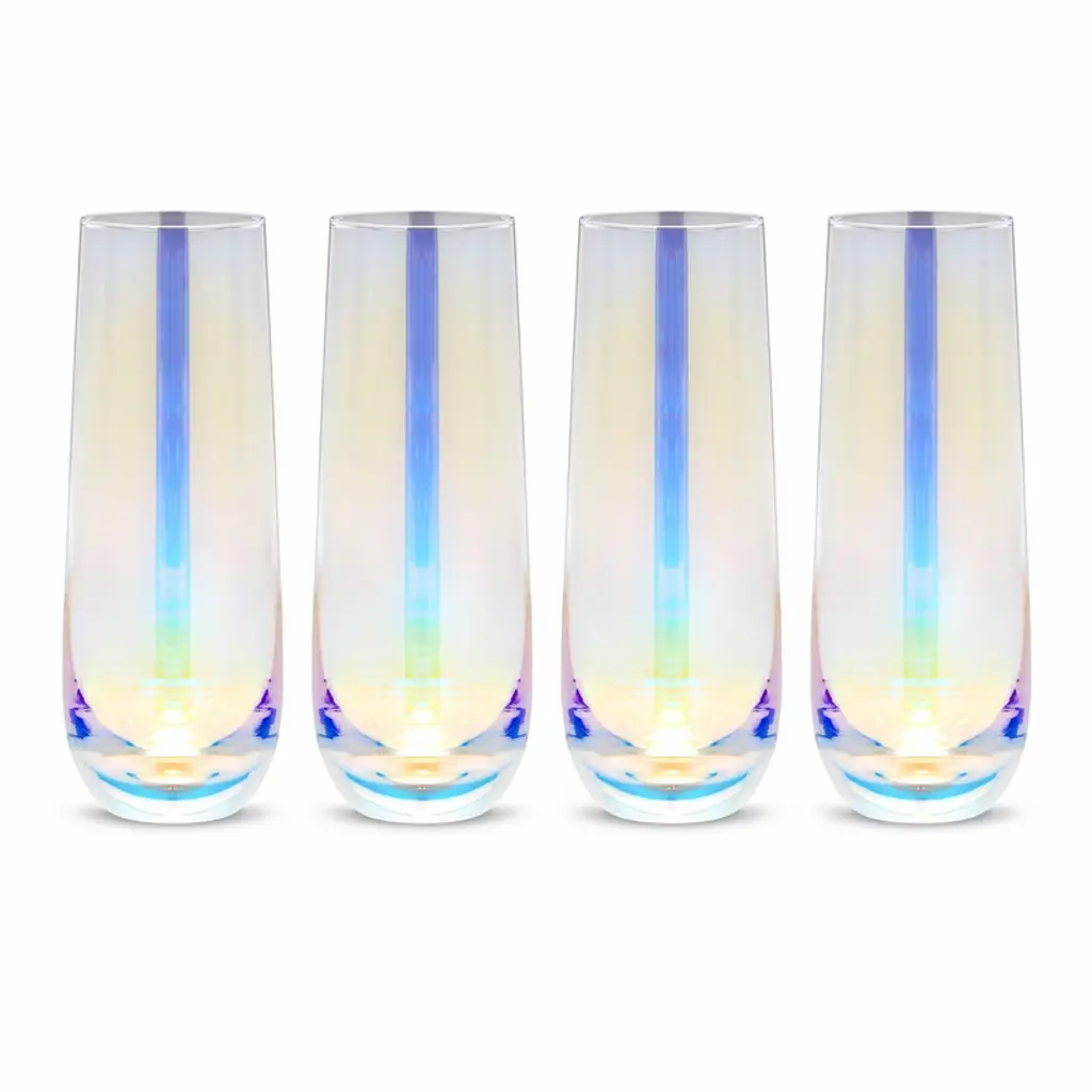 Sparkle And Bash 4 Pack Iridescent Champagne Flutes, Stemless Glasses For Cocktails, Mimosas, Bars, 10 Oz