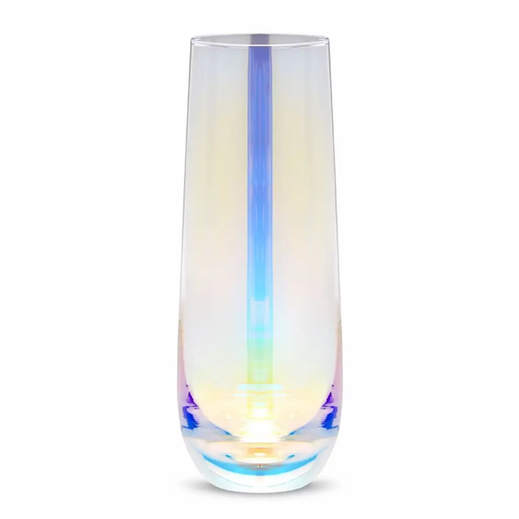 Raise a glass to these stunning stemless champagne flutes! These iridescent glasses make an amazing housewarming or 21st birthday gift and are sure to bring smiles all around. This glassware set comes with a total of 4 stemless flutes that are made of quality glass with an iridescent finish. Each glass has the capacity to hold 10 ounces of liquid.