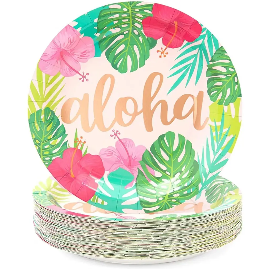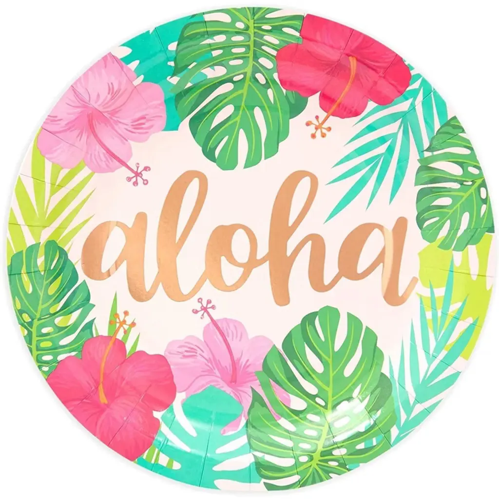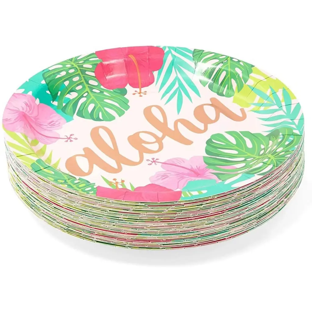 Sparkle And Bash 48 Pack Aloha Hawaiian Disposable Paper Plates, Luau Birthday Party Decorations 9 In