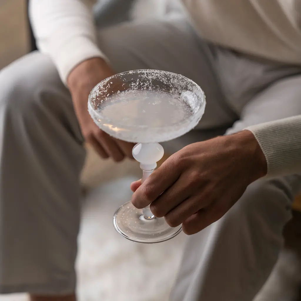 Elegant, unusual, and designed with a sense of quiet drama—the Sparky hollow stem champagne glass brings a sculptural twist to the classic coupe. Created by Italian designer Lara Caffi for knIndustrie, this borosilicate glass piece is anything but ordinary. The shallow, circular bowl is made to enhance the aroma and effervescence of sparkling wines, from vintage Champagne to prosecco. But it’s the hollow stem—slim, delicate, and visually striking—that steals the show. As the liquid flows through to the base, the glass creates a subtle spectacle, especially in candlelight. Ideal for celebratory moments or an evening where the glass itself becomes part of the conversation.
