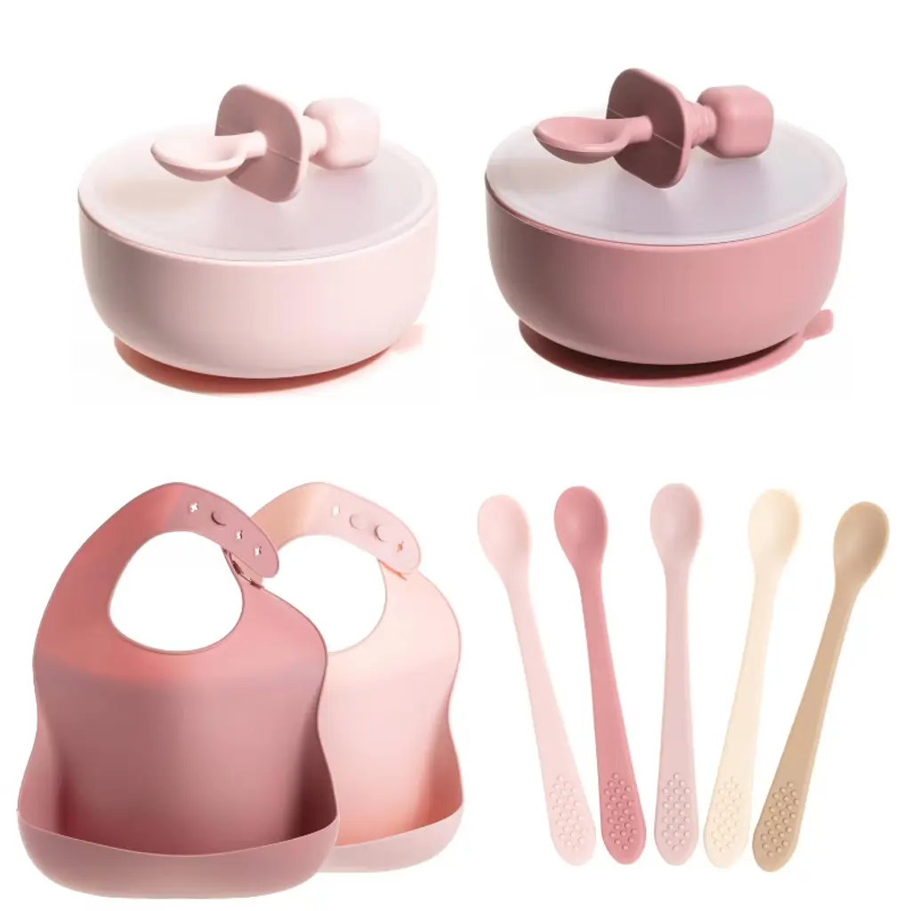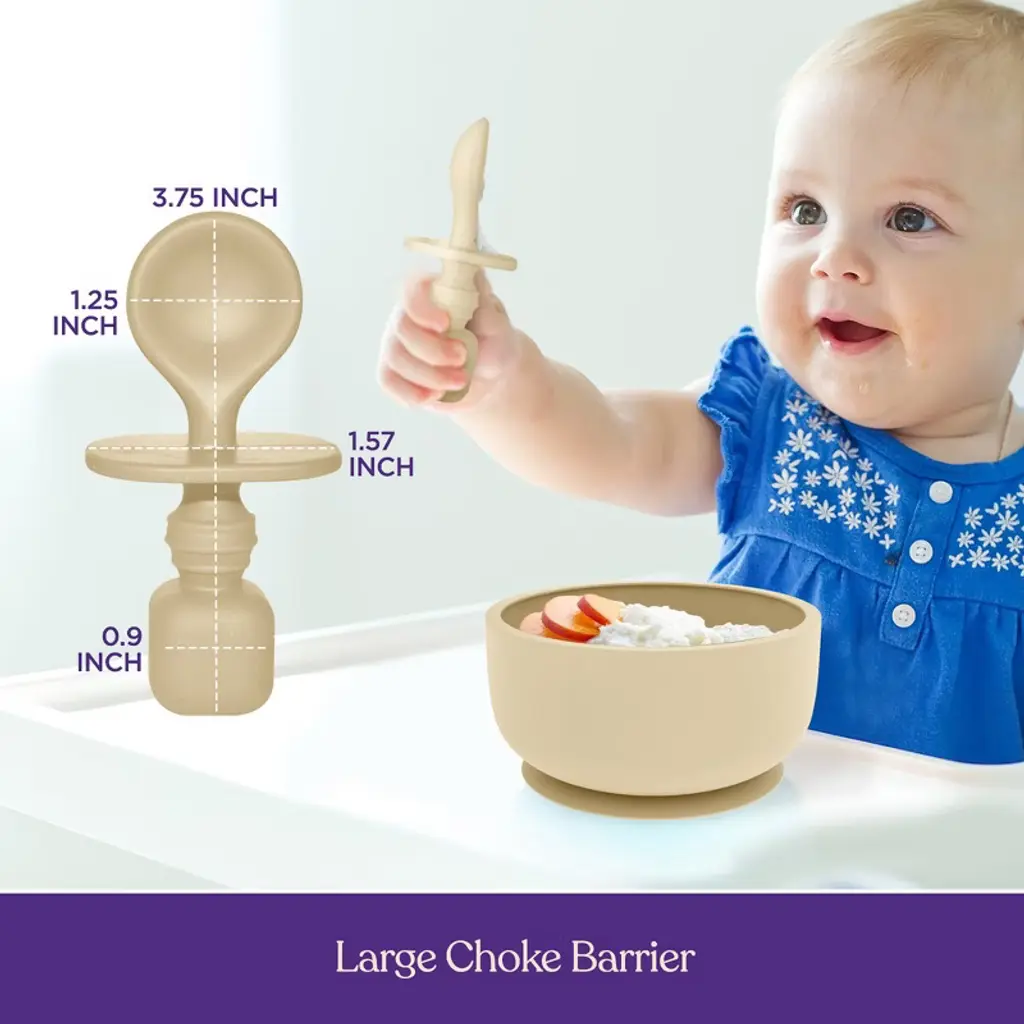 Sperric Silicone Baby Feeding Set - Infant Suction Bowls With Lids And Spoons | Bpa Free Toddler Self Feeding Utensils For 0-6 Months (Beach Sand)
