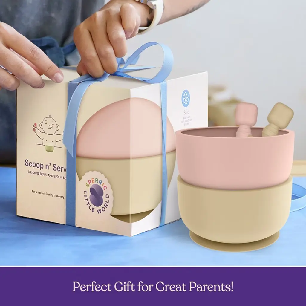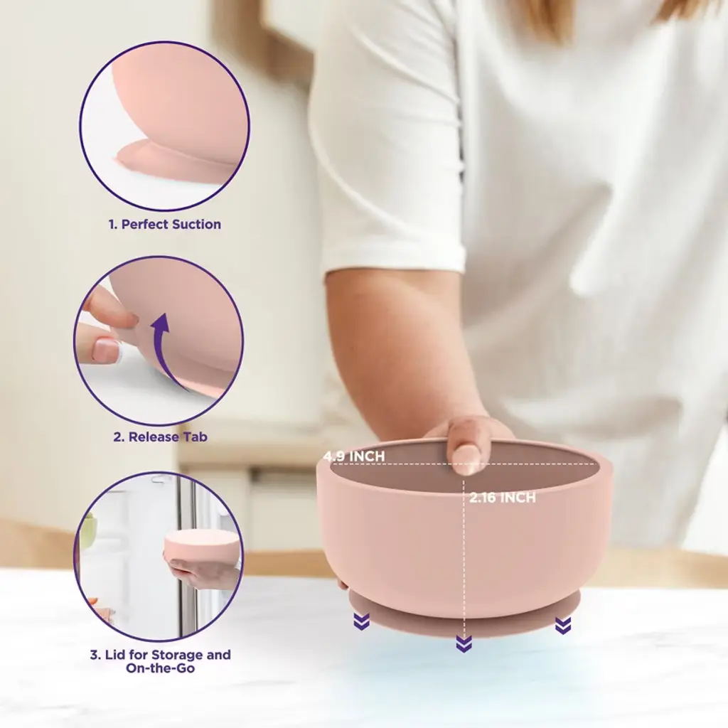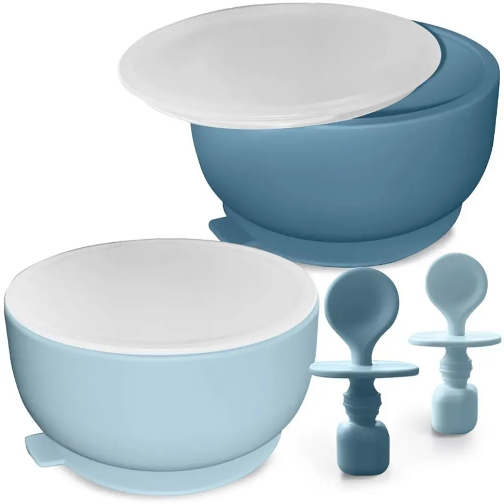 Introduce your little one to the world of solid baby food with Sperric Safe Food Grade Silicone Baby Suction Bowls with Lids and Spoons. This baby feeding set includes two spill-proof suction bowls and spoons designed for self-feeding, ensuring a mess-free and enjoyable mealtime experience. The extra-strong suction base keeps the bowls stable on flat surfaces, and the curved handles aid parents in guiding their babies toward independent eating. Crafted from 100% food-grade silicone, our baby bowls and spoons are free from harmful substances such as BPA, Lead, Phthalate, and PVC. These baby feeding essentials are not only safe but also versatile, being dishwasher, microwave, and freezer safe for convenient meal preparation and cleanup. The set includes two 15 oz baby suction bowls with lids and two baby spoons, making it an ideal companion for infants, babies, and toddlers. The bowls stick to our placemats for added convenience, and for enhanced stability, dampen the base of the suction bowl and press down on the side handles. Whether you're a parent looking to encourage independent eating or searching for the perfect gift for a baby shower or holiday, our silicone baby suction bowl set is a fantastic choice. Backed by our unconditional satisfaction guarantee, if our product does not meet your standards for any reason, feel free to return it for a replacement or a full refund—no questions asked. Make mealtime enjoyable and mess-free with our Safe Food Grade Silicone Baby Spoons and Bowls.