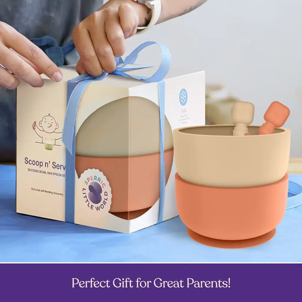 Introduce your little one to the world of solid baby food with Sperric Safe Food Grade Silicone Baby Suction Bowls with Lids and Spoons. This baby feeding set includes two spill-proof suction bowls and spoons designed for self-feeding, ensuring a mess-free and enjoyable mealtime experience. The extra-strong suction base keeps the bowls stable on flat surfaces, and the curved handles aid parents in guiding their babies toward independent eating. Crafted from 100% food-grade silicone, our baby bowls and spoons are free from harmful substances such as BPA, Lead, Phthalate, and PVC. These baby feeding essentials are not only safe but also versatile, being dishwasher, microwave, and freezer safe for convenient meal preparation and cleanup. The set includes two 15 oz baby suction bowls with lids and two baby spoons, making it an ideal companion for infants, babies, and toddlers. The bowls stick to our placemats for added convenience, and for enhanced stability, dampen the base of the suction bowl and press down on the side handles. Whether you're a parent looking to encourage independent eating or searching for the perfect gift for a baby shower or holiday, our silicone baby suction bowl set is a fantastic choice. Backed by our unconditional satisfaction guarantee, if our product does not meet your standards for any reason, feel free to return it for a replacement or a full refund—no questions asked. Make mealtime enjoyable and mess-free with our Safe Food Grade Silicone Baby Spoons and Bowls.