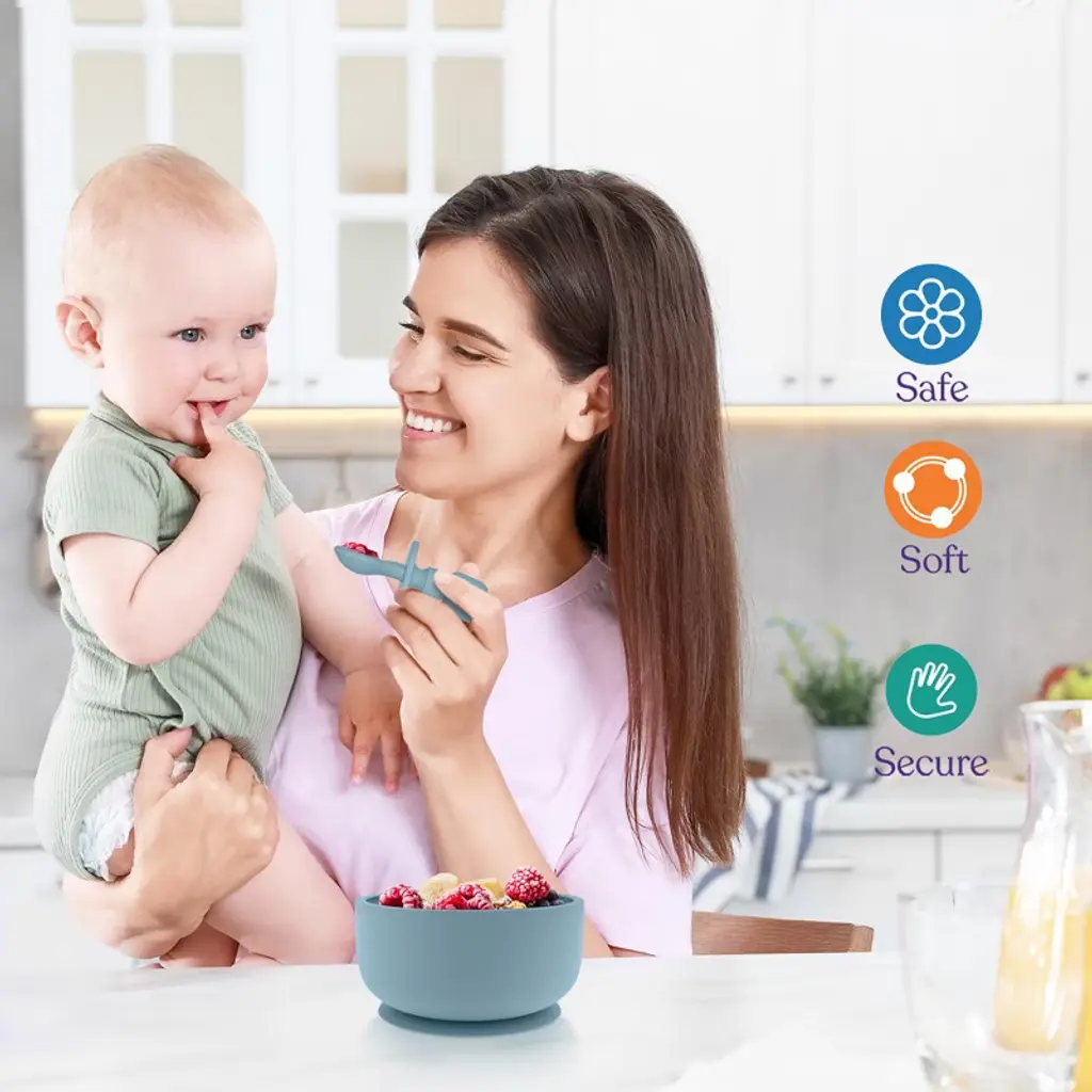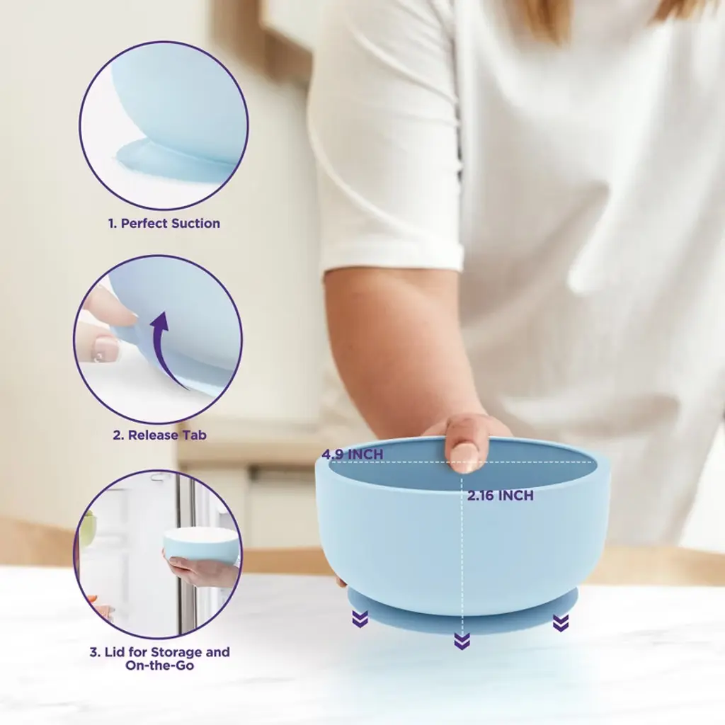 Introduce your little one to the world of solid baby food with Sperric Safe Food Grade Silicone Baby Suction Bowls with Lids and Spoons. This baby feeding set includes two spill-proof suction bowls and spoons designed for self-feeding, ensuring a mess-free and enjoyable mealtime experience. The extra-strong suction base keeps the bowls stable on flat surfaces, and the curved handles aid parents in guiding their babies toward independent eating. Crafted from 100% food-grade silicone, our baby bowls and spoons are free from harmful substances such as BPA, Lead, Phthalate, and PVC. These baby feeding essentials are not only safe but also versatile, being dishwasher, microwave, and freezer safe for convenient meal preparation and cleanup. The set includes two 15 oz baby suction bowls with lids and two baby spoons, making it an ideal companion for infants, babies, and toddlers. The bowls stick to our placemats for added convenience, and for enhanced stability, dampen the base of the suction bowl and press down on the side handles. Whether you're a parent looking to encourage independent eating or searching for the perfect gift for a baby shower or holiday, our silicone baby suction bowl set is a fantastic choice. Backed by our unconditional satisfaction guarantee, if our product does not meet your standards for any reason, feel free to return it for a replacement or a full refund—no questions asked. Make mealtime enjoyable and mess-free with our Safe Food Grade Silicone Baby Spoons and Bowls.