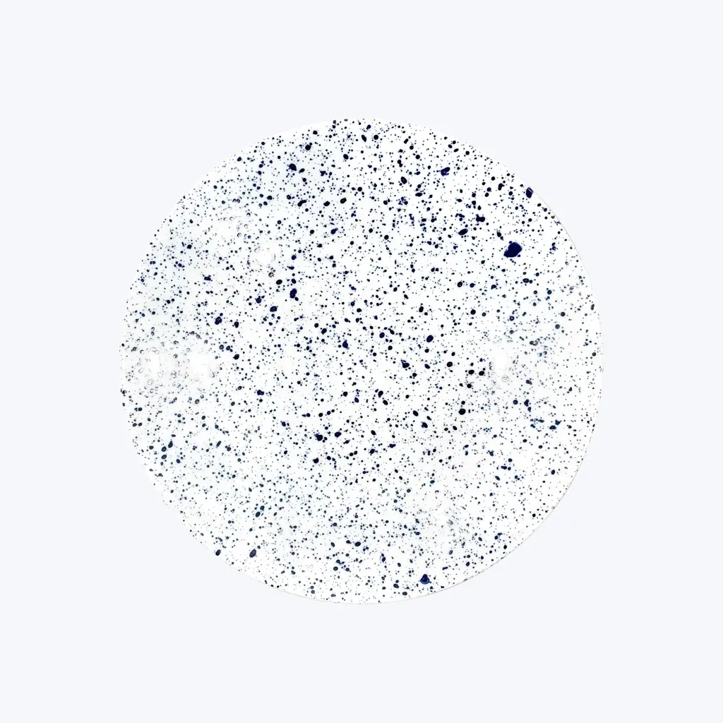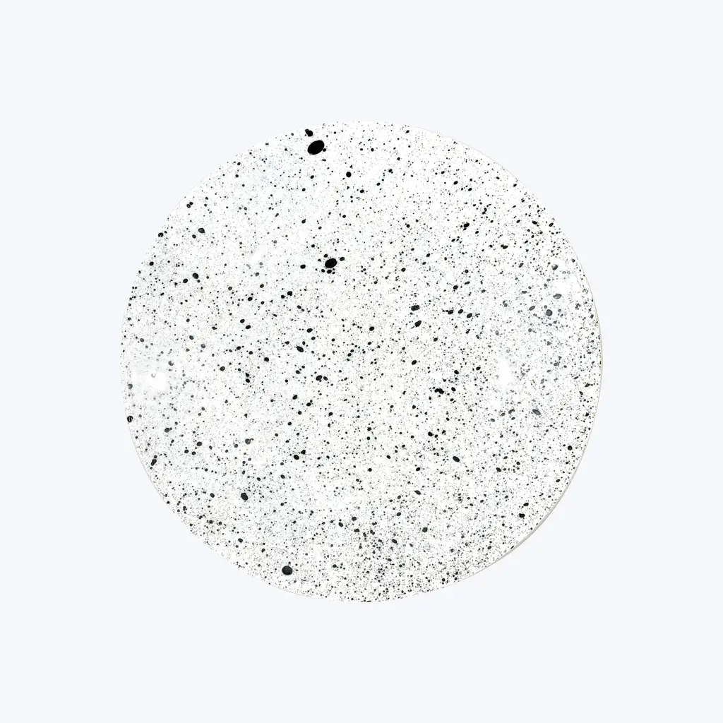 Bring artisanal beauty to every meal with the Splash Buffet Plate by Non Sans Raison. Handcrafted in the finest Limoges porcelain, this elevated plate features a unique marble pattern applied entirely by hand according to Jackson PollockÕs drip and splash technique. This method makes every piece a one-of-a-kind creation, allowing for a varied and original table setting. Made in France. Available in Black, Empire Green, Gray, Navy Blue, Orange, and Rose.