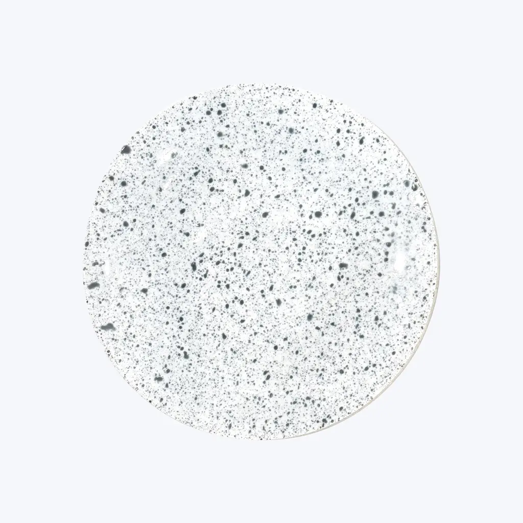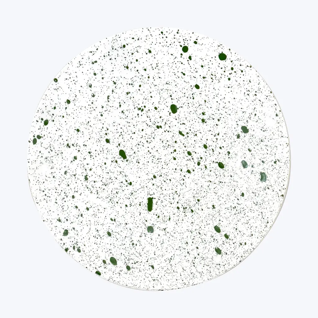 Bring artisanal beauty to every meal with the Splash Buffet Plate by Non Sans Raison. Handcrafted in the finest Limoges porcelain, this elevated plate features a unique marble pattern applied entirely by hand according to Jackson PollockÕs drip and splash technique. This method makes every piece a one-of-a-kind creation, allowing for a varied and original table setting. Made in France. Available in Black, Empire Green, Gray, Navy Blue, Orange, and Rose.