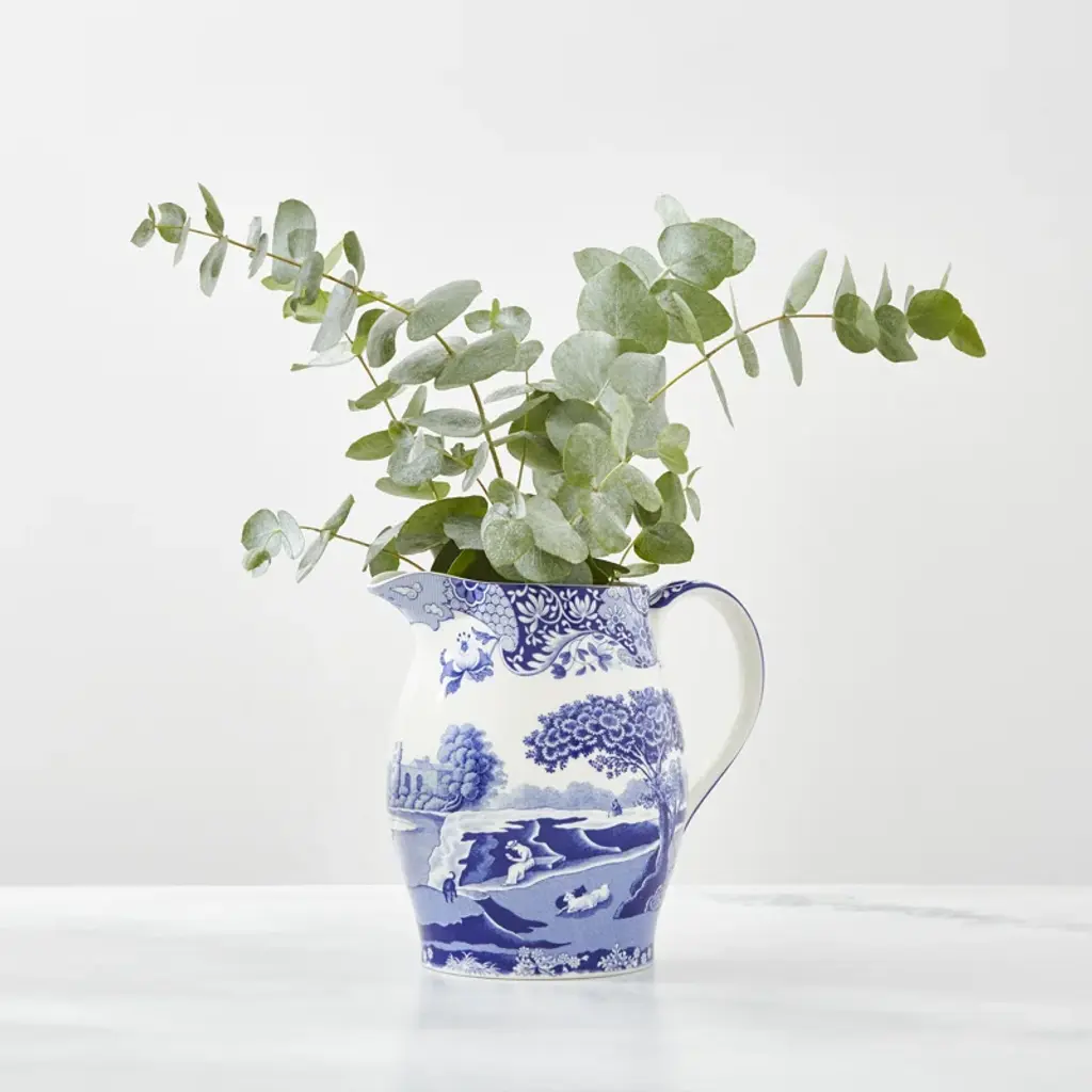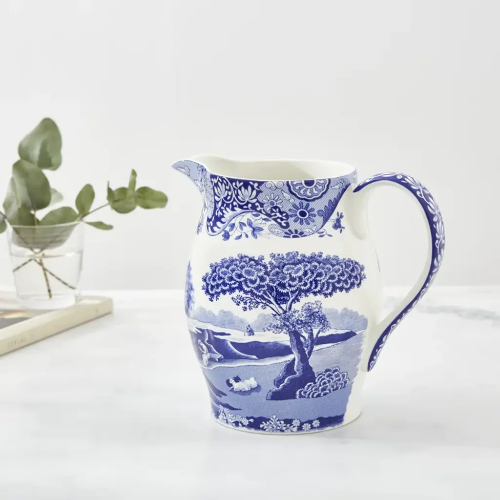 Discover the timeless elegance of Spode's blue Italian pitcher, a classic piece that has graced homes since 1816. Crafted from premium quality porcelain, this 3.5-pint pitcher features an exquisite 18th-century Imari Oriental border surrounding an Italian countryside-inspired scene. Perfect as a centerpiece on your dinner table or mantelpiece, it adds a touch of effortless charm to any space. Plus, it's dishwasher and microwave safe for easy care. Beautifully packaged, this Liverpool jug makes an elegant gift for someone special or a treat for yourself.