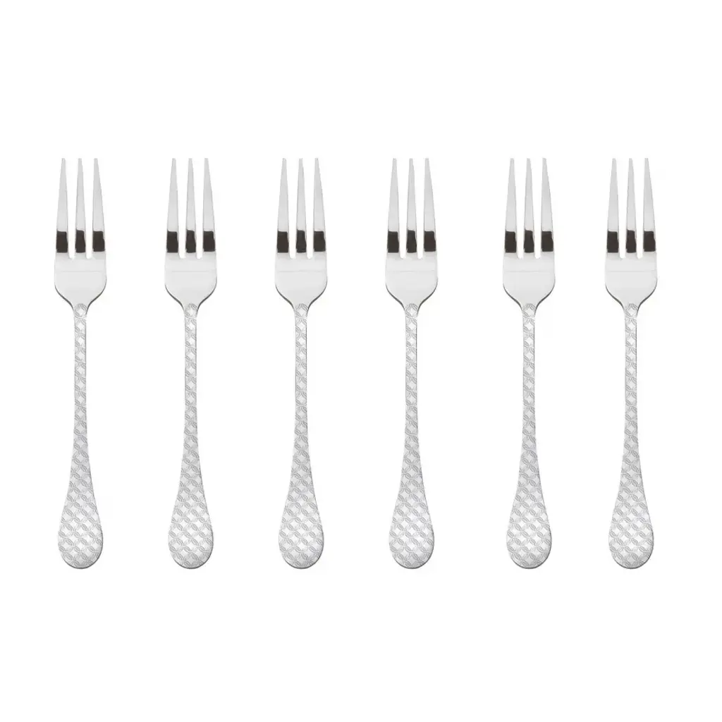 With porcelain handles artfully decorated in a stunning blue-and-white print, this set of pastry forks adds an elegant touch to any table. Made in England.