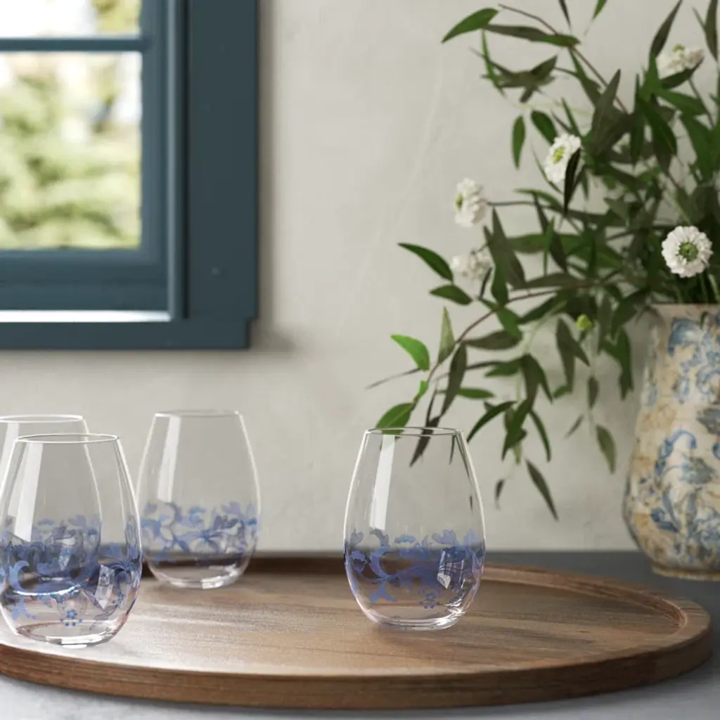 Spode Blue Italian Stemless Glasses 19 Oz (Set Of 4)