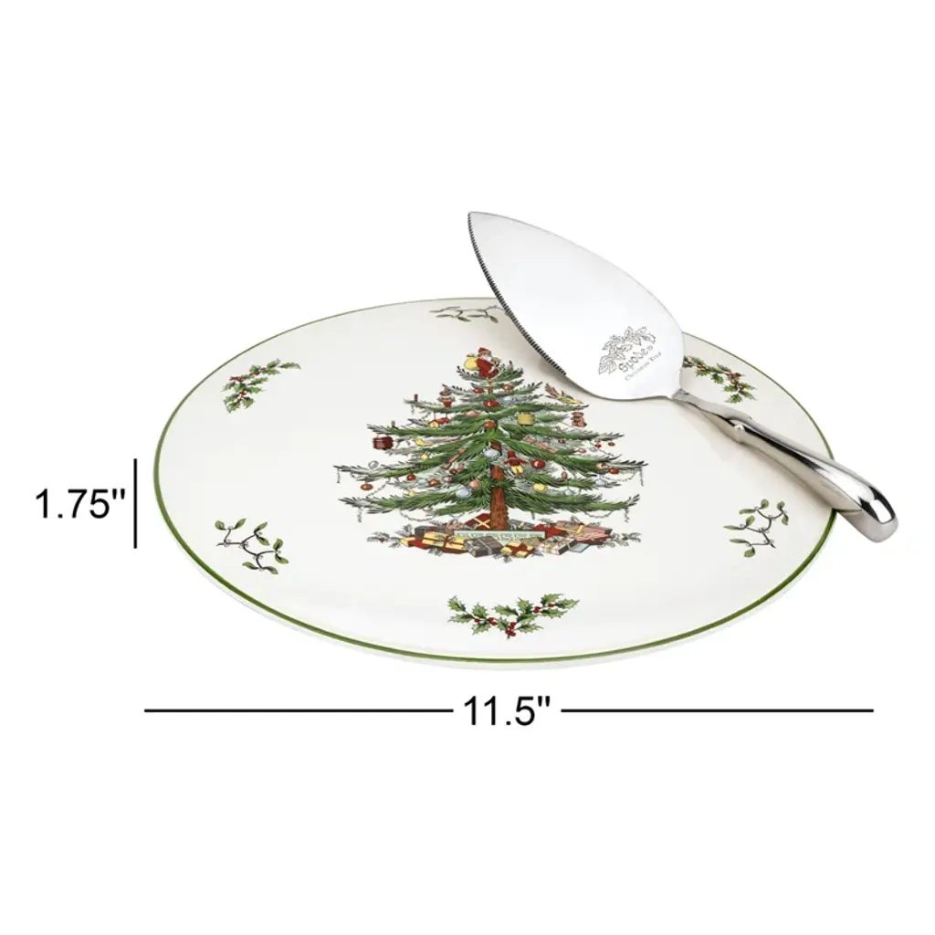 Spode Christmas Tree Cake Plate & Server Set 11.5"