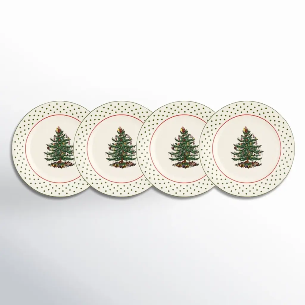 Spode Christmas Tree Polka Dot Dessert Plates (Set Of 4)