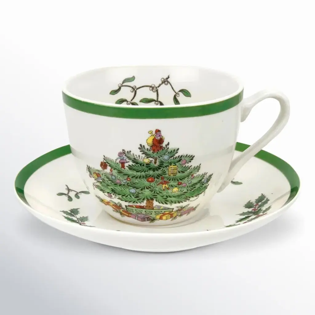 Spode Christmas Tree Teacup & Saucer 7 Oz