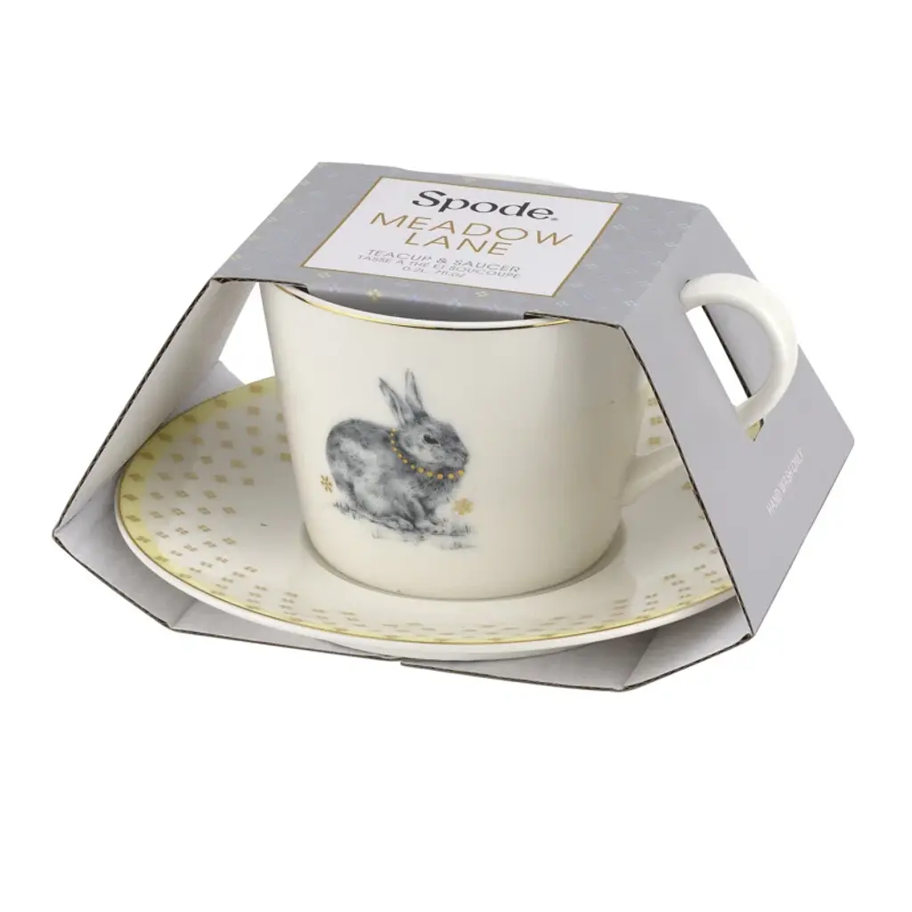 The teacup adds a touch of spring to your table. This charming teacup has everything one would need to entertain during Easter and elegantly throughout the year. An exquisitely drawn bunny adorns each piece with sparkling gold accents. This teacup and saucer by Spode feature a pastel yellow border with sparkling gold accents and a charming drawn bunny design. This teacup and saucer are ideal for adding an elegant touch to your favorite hot beverage and making a wonderful gift.