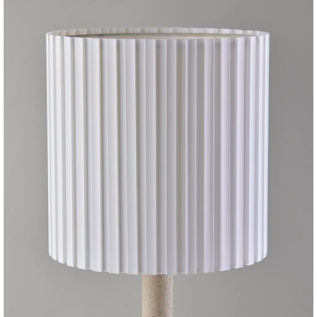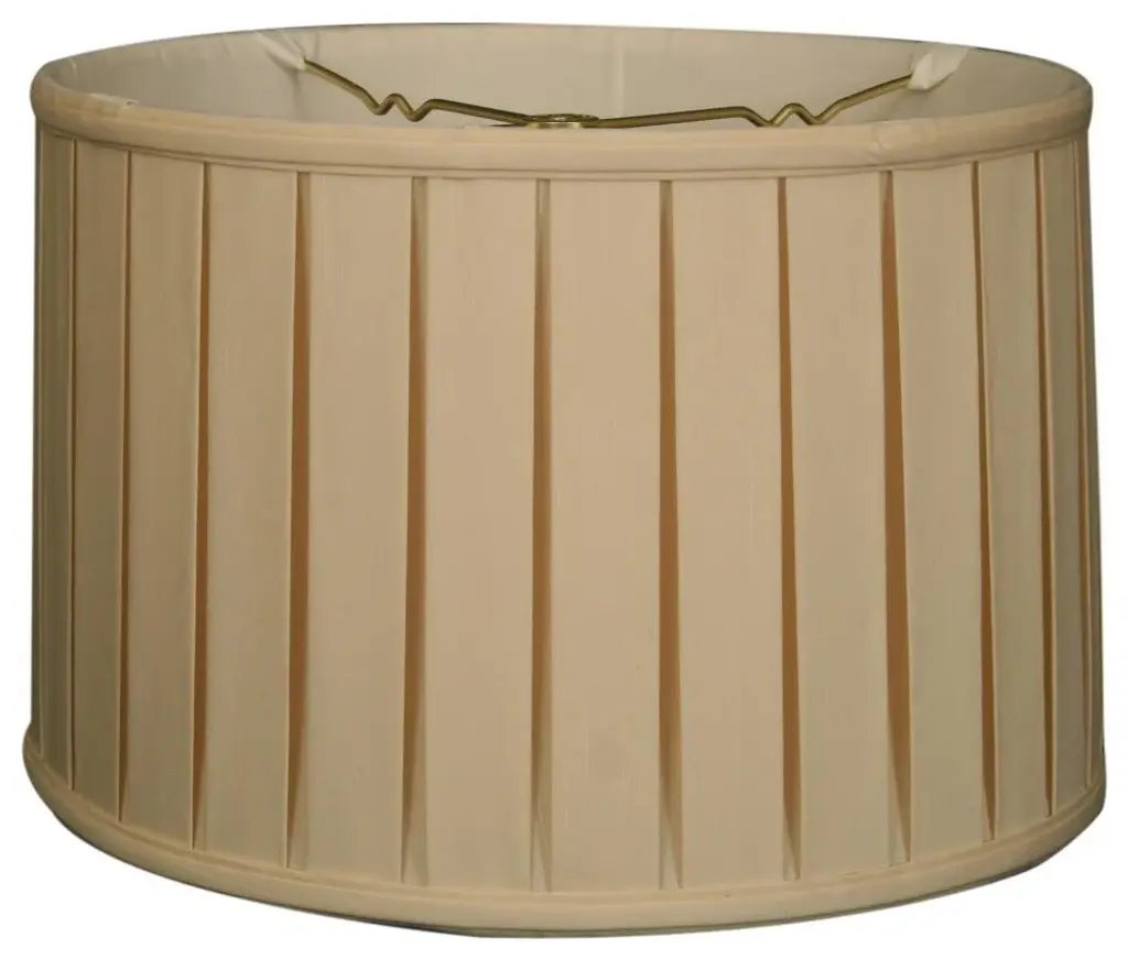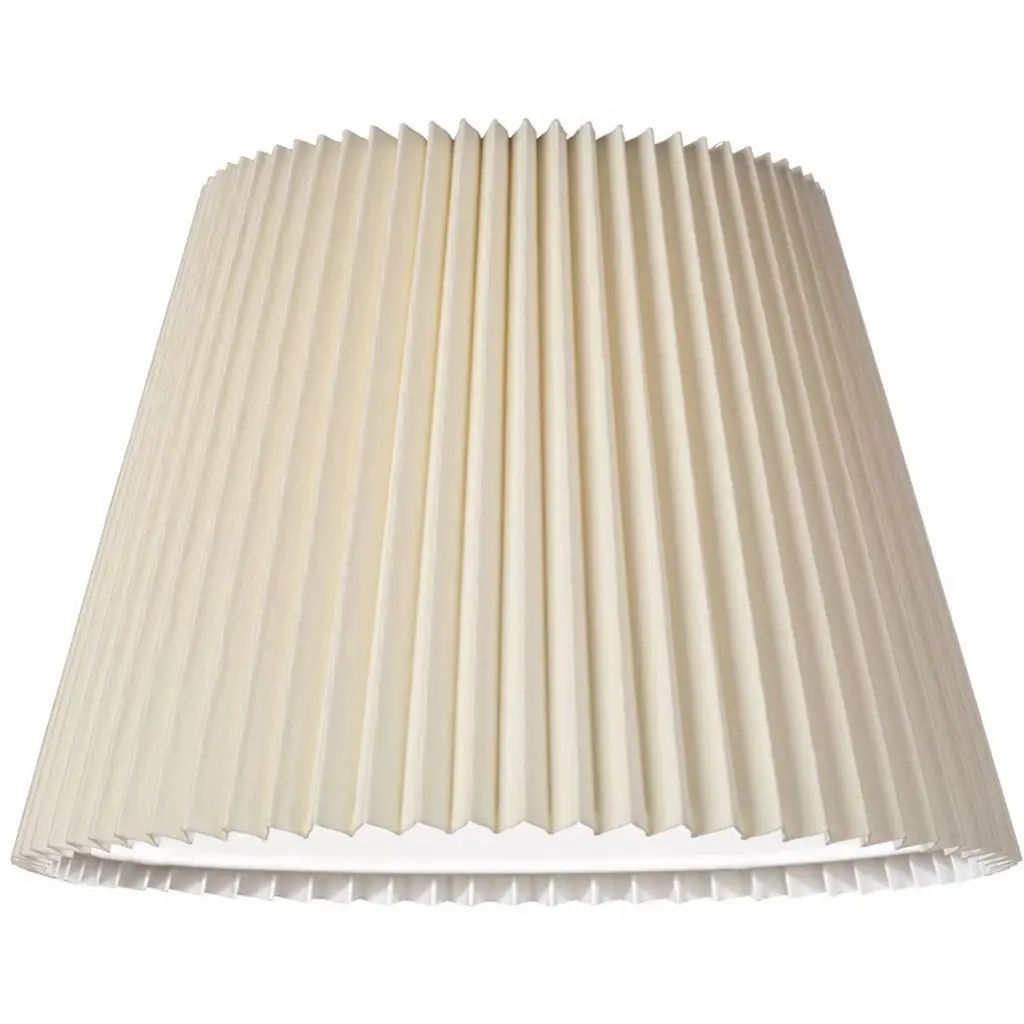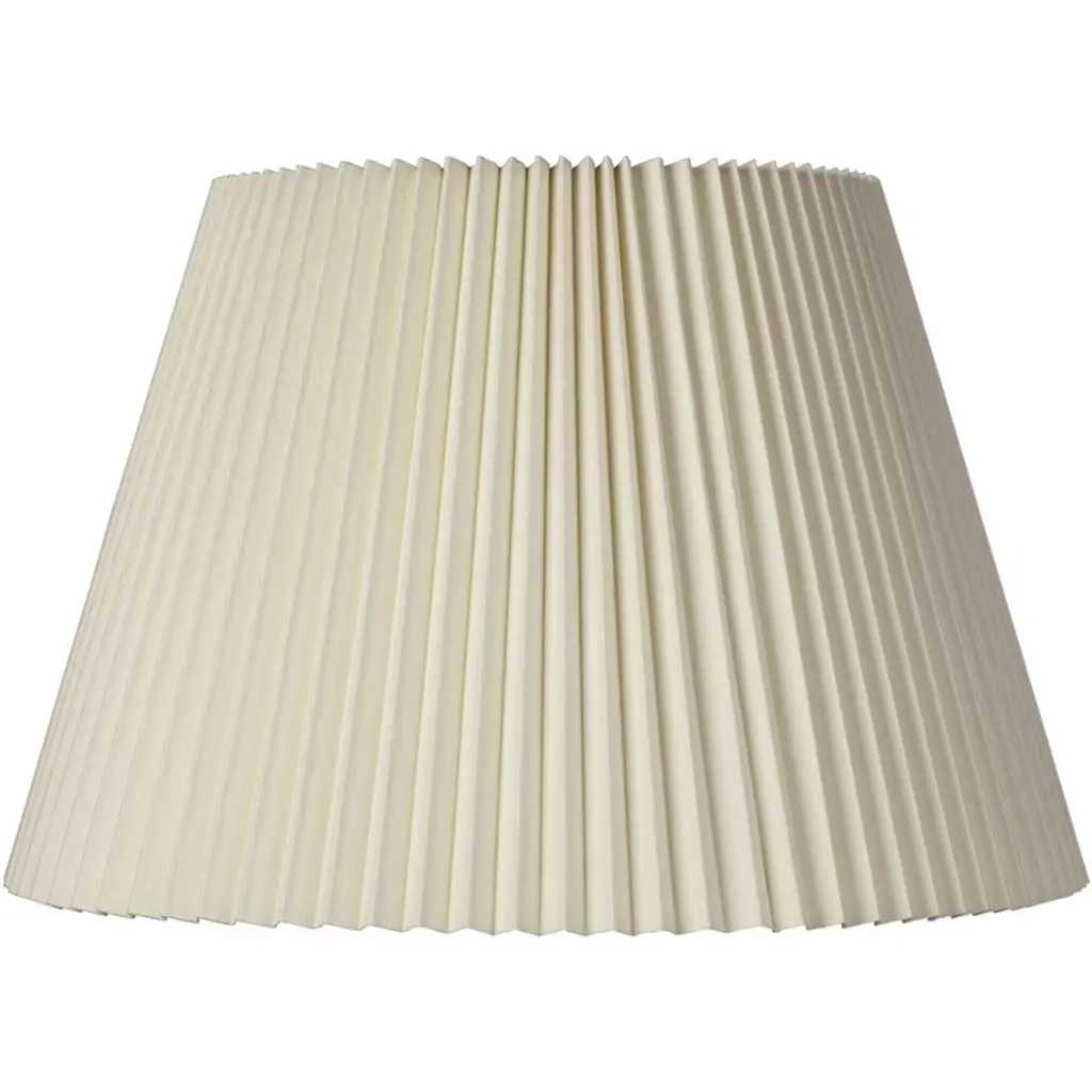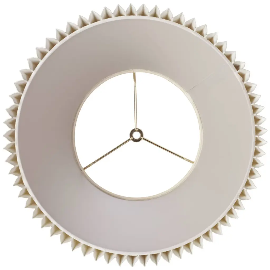 Knife pleats lend unique style to this linen lamp shade in off-white. Spice up an existing table or floor lamp with this sharp shade. The correct size harp and a finial are included free with this shade design. A classic shade style from the Springcrest Collection.