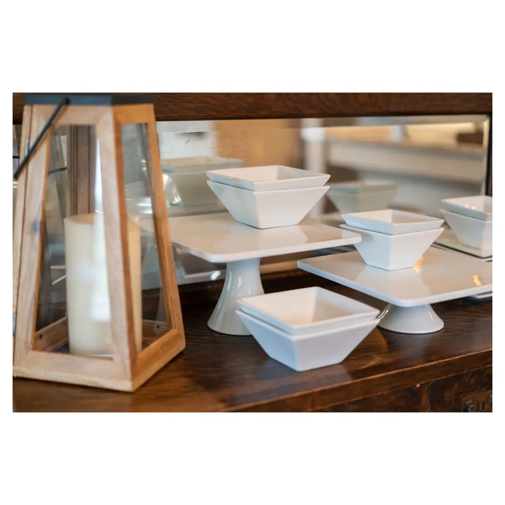 The BIA Cordon Bleu Porcelain Square Pedestal Cake Stand in classic white design is the perfect way to elegantly display your baked treats. This 11" square stand with a 6.25" pedestal adds a touch of sophistication to any table or buffet setting. Crafted from high-quality porcelain, this stand is durable but hand washing is recommended. Whether for casual family dinners or formal events, this versatile stand seamlessly transitions from oven to table. Showcase your cakes and desserts with clean lines and simple shapes, mixing and matching with other colors for a unique look. BIA Cordon Bleu: Designed With Modern Sensibility For Wherever You Live, However You Cook, And Whenever You Entertain.
