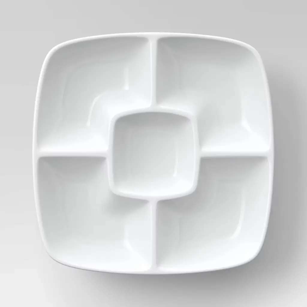 Square Porcelain Divided Serving Platter 11.5" White - Threshold™