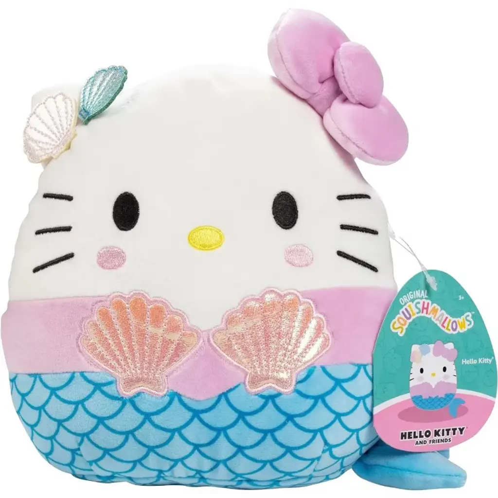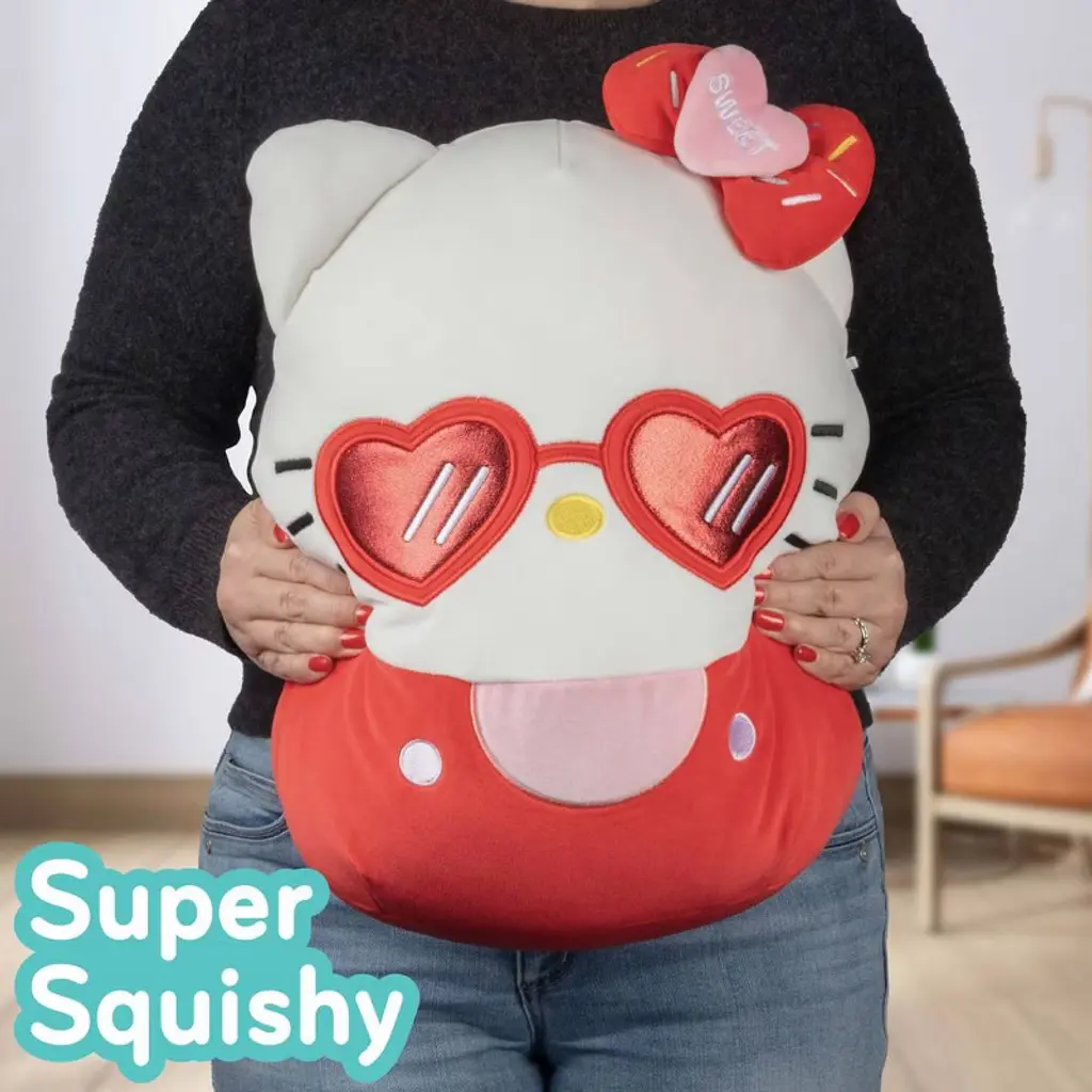 Get ready to snuggle with the Sanrio Hello Kitty Squishmallows plush! This adorable large Hello Kitty plush is all dressed up and ready to be loved by you! Wearing super fashionable, heart-shaped red glasses, a pretty red bow with sprinkles, and red shorts, she is picture-perfect for her close-up! Add the sweet and snuggly Hello Kitty plush to your Squishmallows Squad. Perfect for Squishmallows and Sanrio fans of all ages, the ultra-squeezable 14-inch plush is made with soft, high-quality materials. They are perfect to snuggle with while relaxing at home, watching a movie, or taking a long car or plane ride. These authentic Squishmallows plush are easy to clean: spot clean only. The loveable and squeezable Sanrio Squishmallows plush characters are the softest and cutest plush toys around! Join the Squad!
