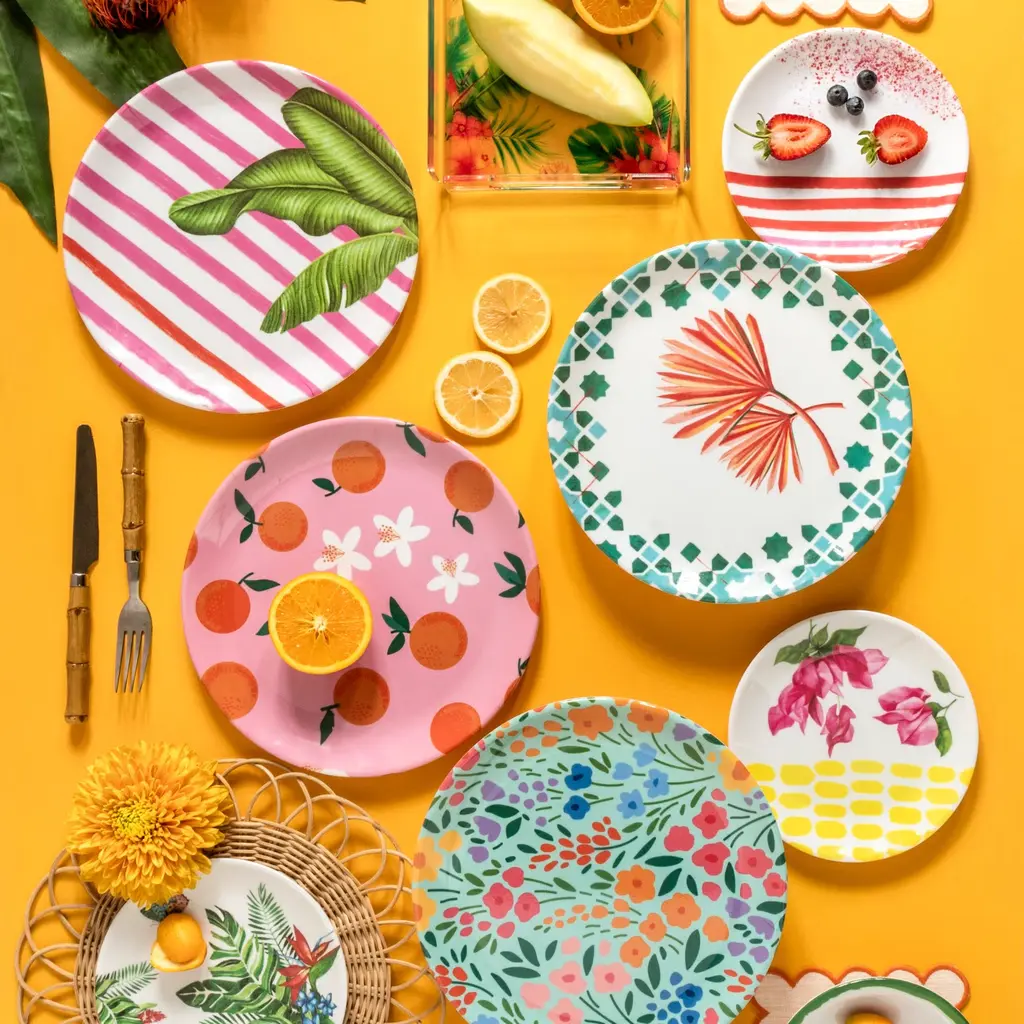 "The contemporary patterns of the unique collection are painted by local artists and produced in limited quantities.You may use these decorative melamine plates as a dessert or appetizer plate on your tables."