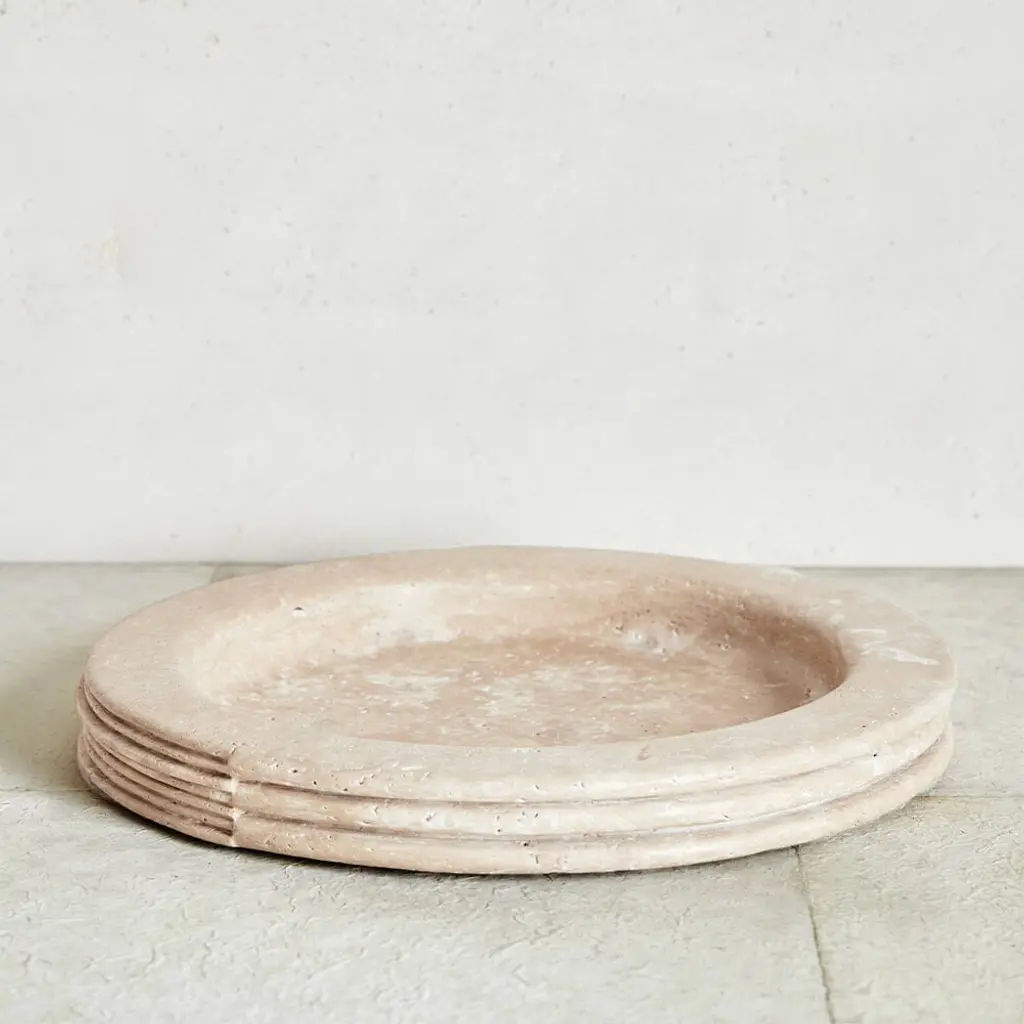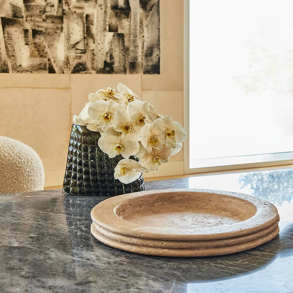 A reflection of nature’s influence, the Stacked Platter is an ideal centerpiece with its horizontal ribbing texture and naturally occurring variations in travertine stone.