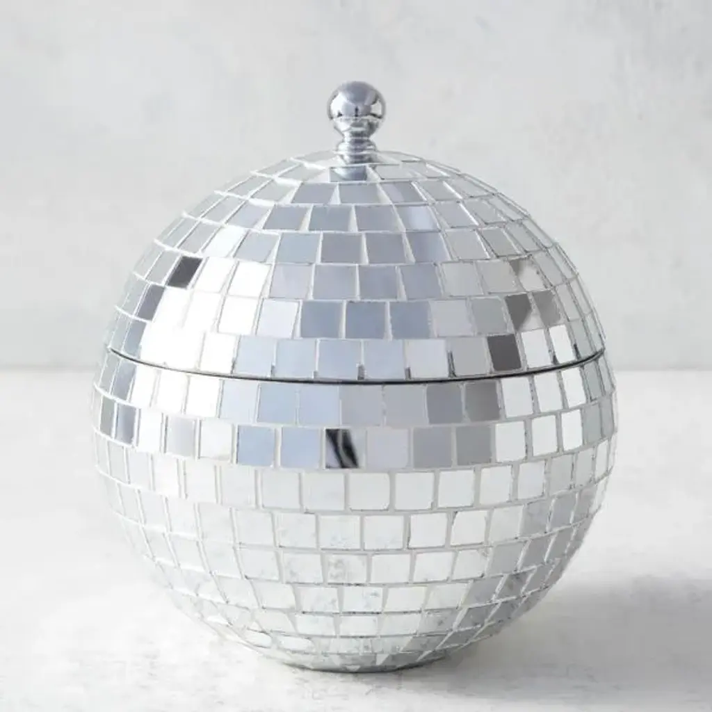 Elevate any event with this Ball-shaped Ice Bucket, designed to impress. Measuring 7 inches in diameter and height, it features a dazzling mirrored glass mosaic and a sleek silver finish. Crafted from durable stainless steel and glass, this ice bucket ensures both durability and a stunning reflective shine. Perfect for seasonal gatherings, it keeps ice chilled and ready to serve, adding a touch of glamour and sophistication to the festivities. This essential piece promises to enhance the ambiance of any occasion with its refined elegance and practicality. Don't miss the chance to make every gathering extraordinary!