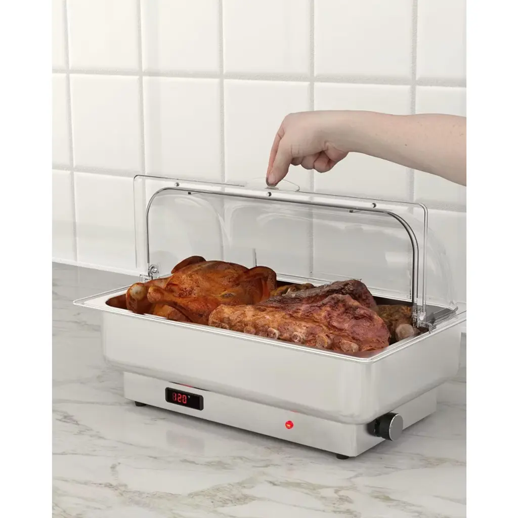 Stainless Steel Electric Chafing Dish Buffet Set 2X4.5qt Half-size With Temperature Control, Roll Top Buffet Servers And Warmers With Transparent Lid
