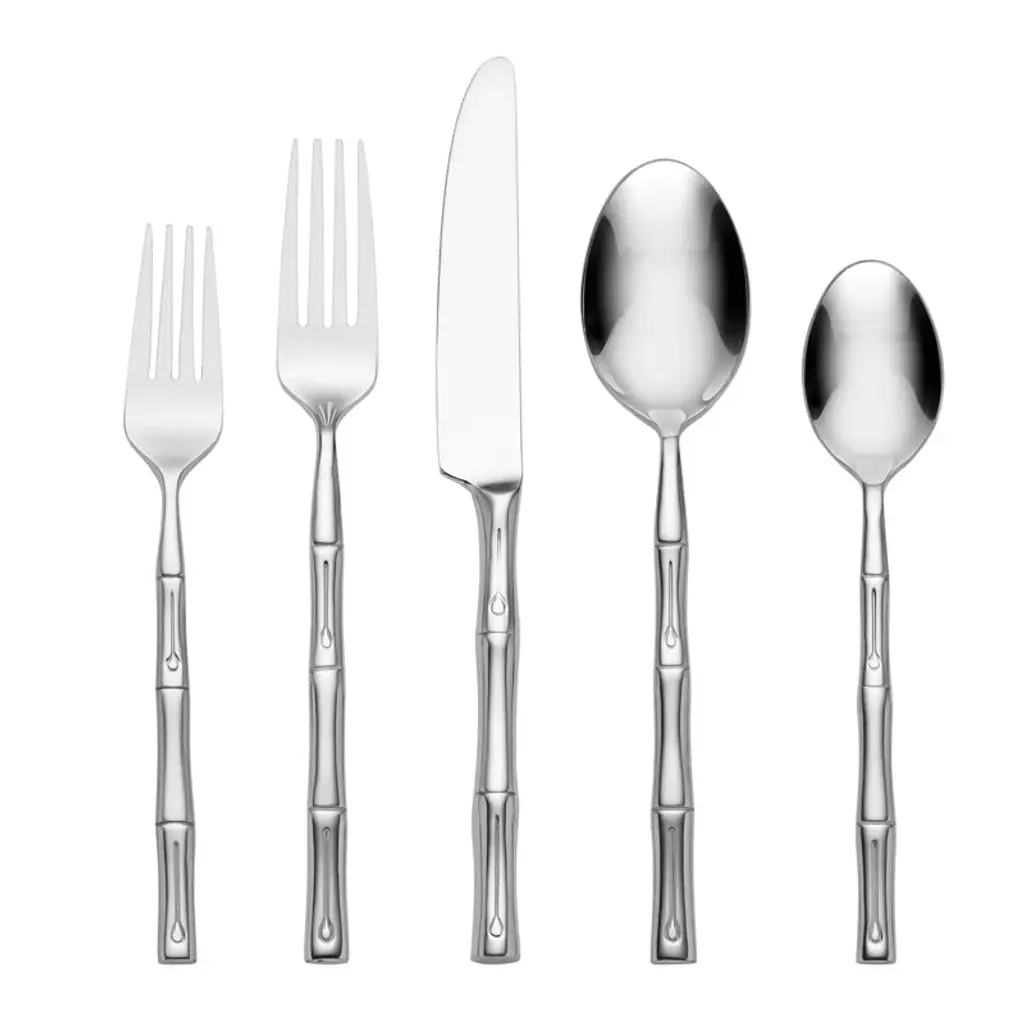 Whether looking for an organic accent or wanting to add a touch of tropical appeal to your entertaining arsenal, the Logue 20-piece flatware set, service for 4 is a tasteful addition to your table setting. Each mirror-polished piece is patterned on both sides for a seamless presentation. Crafted from durable stainless steel featuring natural handles inspired by the unique texture of bamboo, this flatware set adds a bit of exotic flair to everyday meals.