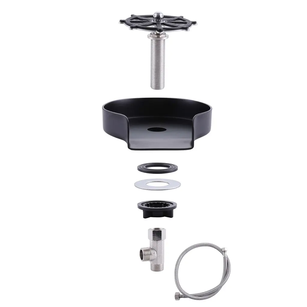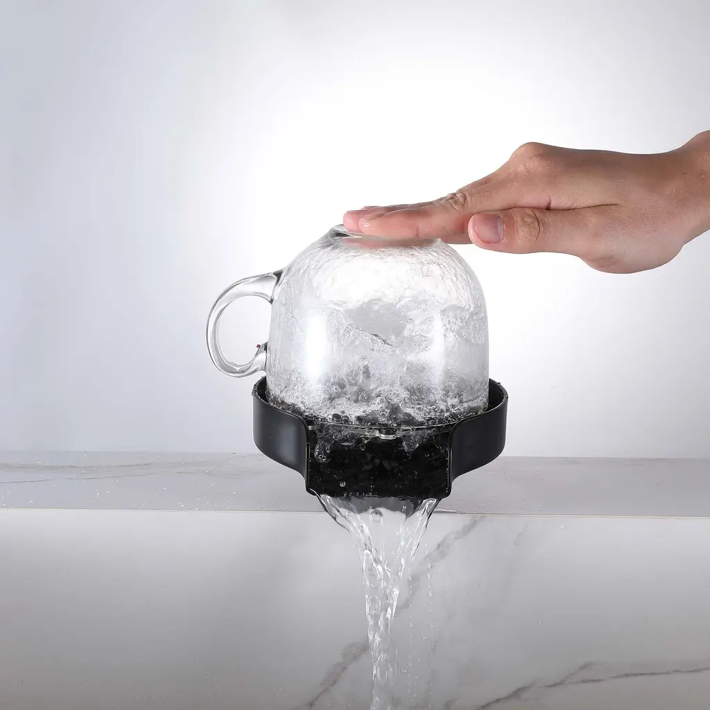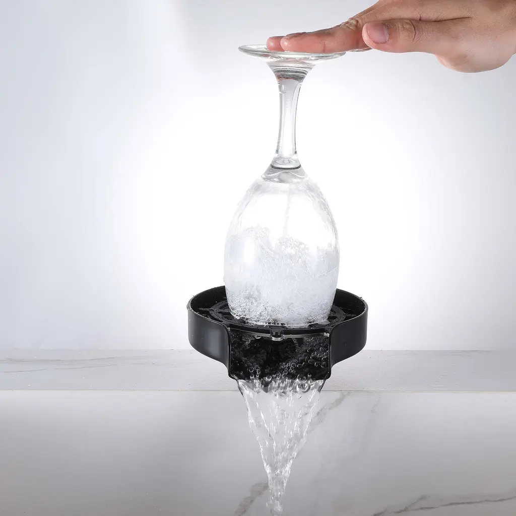 The kitchen sink bottle washer made of 304 stainless steel can withstand the wear and tear of everyday activities, and can remain colorfast and non-deformed for a long time, except food grade silicone pads. Enhance your cleaning experience with this exceptional glass rinser. Its powerful water jets provide multi-dimensional cleaning, easily rinsing away stains in seconds. 360-degree rotation ensures thorough cleaning, freeing your hands and giving you more time to immerse yourself. The cup rinser has been tested many times before leaving the factory and is of high quality. The kitchen sink cup washer reduces labor intensity, improves work efficiency, and improves cleanliness. The glass rinser is the first choice for kitchen cup washing. Features:✅【Quick Cleaning】Matte Black ,classical and elegant, can be matched perfectly with your kitchen environment. Multi-angle water outlet cleaning head realizes multi-angle spray hole washing and effectively wash your cup, saving time and effort, convenient and practical.✅【Effortless One-Hand Operation】This 360-degree rotation glass washer for sink allows for single-hand operation with convenience and safety. Simply turn the cup upside down and gently press the bottom to activate the automatic water spray for cleaning. Once the cup is cleaned, removing it immediately stops the water spray.✅【No More Scrubbing & Soaking】From baby bottles and wine glasses to travel mugs, our glass rinser can easily clean almost any drinkware. It significantly reduces soaking and scrubbing time, ensuring that water reaches every corner you want to clean, providing a one-step cup rinsing solution. Leave your cups and bottles looking brand new with this faucet glass rinser.✅【Convenient and Efficient】From wine glasses to baby bottles to travel cups, the kitchen sink faucet bottle washer conveniently rinses virtually any drinkware, so you can spend less time soaking and scrubbing.✅【Durable Stainless Steel Material】The cup rinser for sink is made of sturdy 304 stainless steel for longer life and less damage.✅【Suitable for All Kinds of Cups】Whether it's wine glasses, water glasses or milk bottles, the can clean almost any drinkware, freeing up your hands to the maximum.✅【Easy to Use and Install】Our glass washer starts rinsing automatically with an easy press. No other special tools are needed and it will only take you a short time to set it up.