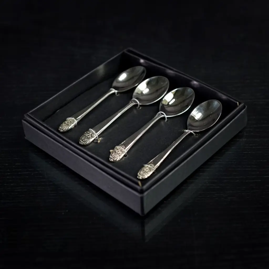 Stainless Steel Tea Spoon With Rose Patten On The Top, Set Of 4