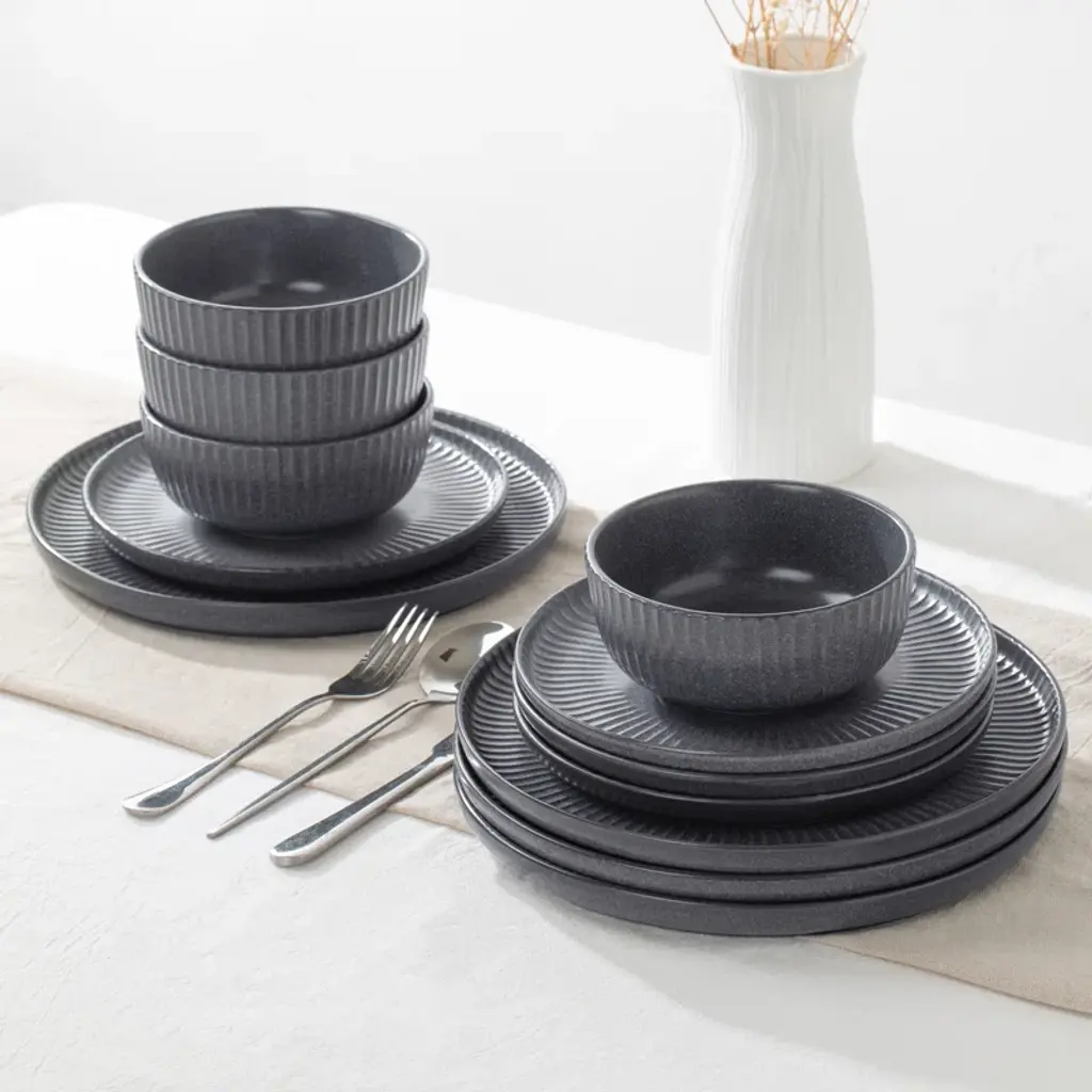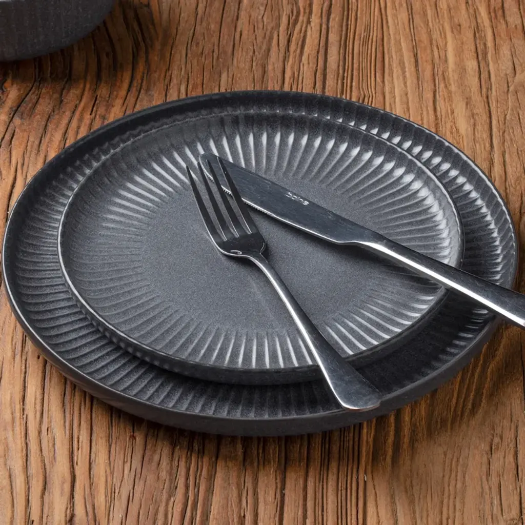 This tableware set includes 6 dinner plates (10.24"), 6 salad plates (8"), and 6 cereal bowls (5.5")—providing everything you need for a full-course meal. The soft matte glaze and subtle textured detailing create a luxurious yet understated look, blending classic and contemporary styles effortlessly. Its neutral color palette complements any table setting, from minimalist modern to rustic farmhouse decoration. Whether it is an everyday meal or a special occasion, the tableware will give your table a warm and elegant atmosphere.