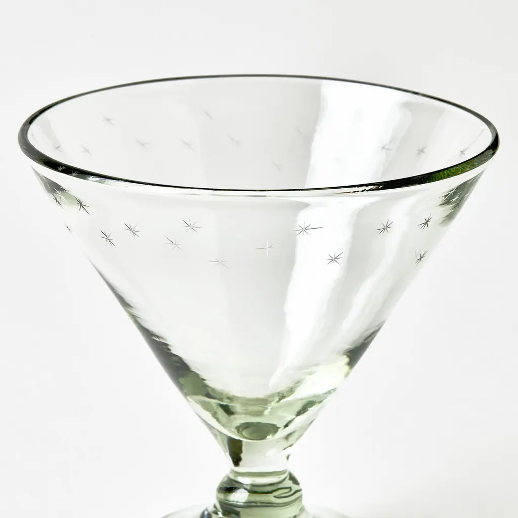 Hand-etched in Central Mexico from 100% recycled glass, the Starry Night Footed Dish Glass in Clear features our signature motif encircling its bowl in delicate starlight. Generously sized and elevated on a graceful pedestal, it’s perfect for layered desserts, abundant snacks, treasured keepsakes—or, if you’re feeling bold, one seriously oversized martini. Both functional and enchanting, it adds a touch of magic to every table.