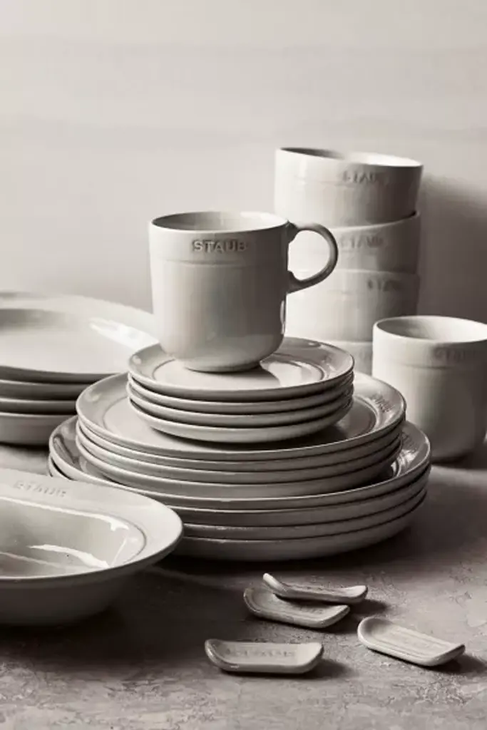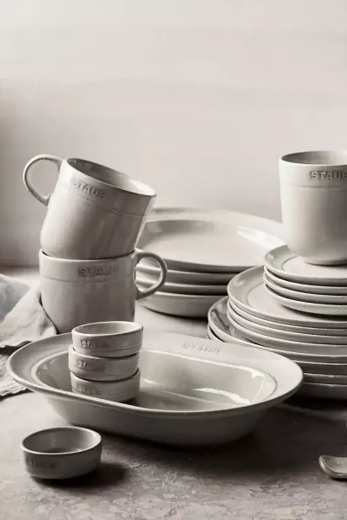 Traditional craftsmanship meets a fresh modern design on the dinner table. Rooted in France and adored by chefs worldwide, STAUB brings people together in the kitchen and around the table. Now, you can set your table in style with this gorgeous dinnerware, including dinner plates, cereal bowls, mugs, and more. Remarkably durable and exquisitely crafted, each piece in this dinnerware collection is infused with a rich culinary heritage that puts the pleasure in cooking. This lovingly crafted, moisture-resistant stoneware is super durable, making it ideal for everyday use. The eye-catching enamel hues boast impressive scratch resistance so you can serve and safely stack without worry. Microwave and dishwasher safe, this long-lasting stoneware will serve memorable meals for years to come.