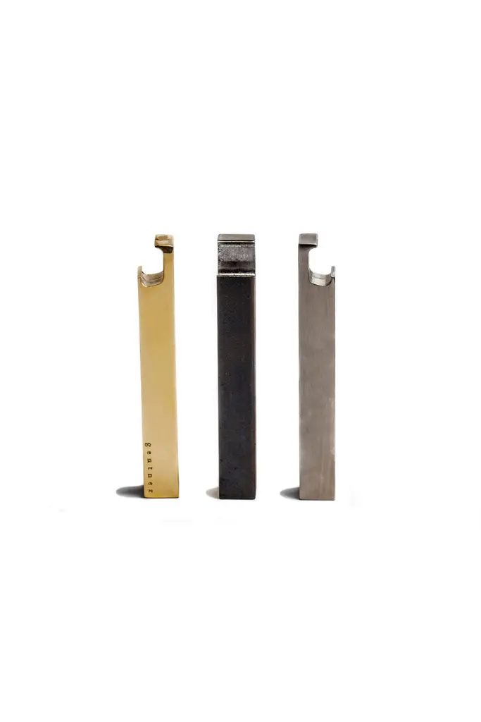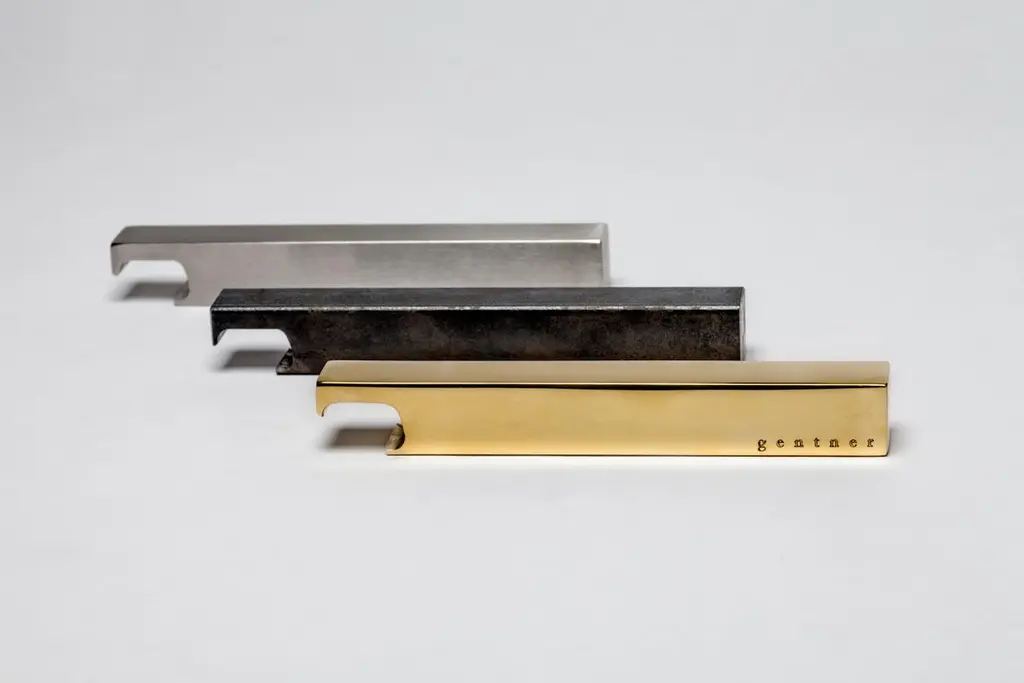 Darkned Brass Bottle Opener by Gentner DesignDimensions: D 14 x W 1.9 x H 1.9 cmMaterials: stainless steelStrong in form and heavy in weight, the bottle openers are elegant in their simplicity and precision. Solid bar stock is transformed through the most minimal intervention possible, creating an object that is highly functional requiring only the slightest effort. Its beauty is something worthy of being left out for all to see.Gentner DesignRooted in a language of sculpture, character defining details, and world renowned craftsmanship, the work is found at the crossroads of design and art.Established in 2011, the namesake furniture label is a rare combination of aesthetic dexterity and mastery of craft resulting in furniture and objects that are expressive, formal, and transcend materiality.The collection is based in metal and incorporates only natural materials such as leather, wood, and glass in unique ways, challenging our assumptions.Christopher GentnerChristopher Gentner, with a BFA in metalsmithing from the Cleveland Institute of Art and apprenticeships under sculptors and jewelers, together with dedication to craft, quickly developed his reputation nationally as a foremost authority of metal fabrication and furniture.One of his crowning achievements was the re-creation and fabrication of the Frank Lloyd Wright Robie House gates.These unique experiences are the foundation of his design philosophy which he employs in his own line of furniture, lighting, and objects.
