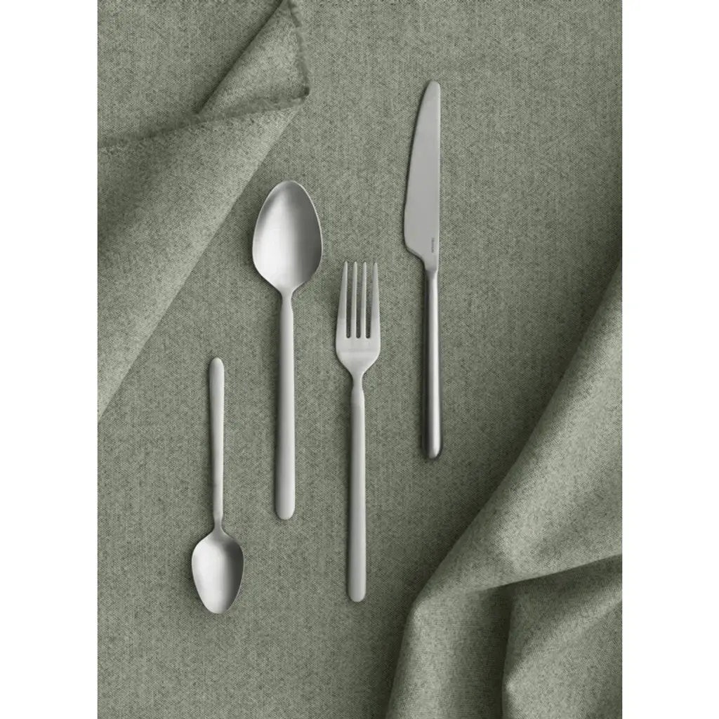 16 piece 18/10 stainless steel flatware set, service for 4 features high-quality craftsmanship, authentic materials, and a love for simple shapes. The flatware set was designed by Theresa Rand with clean, slim lines, refined by rounded edges which give a poetic softness and create a beautiful vision.