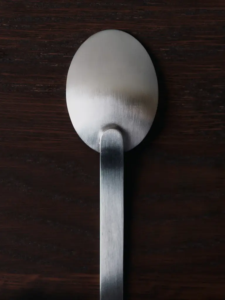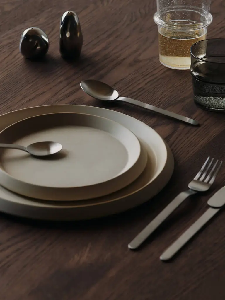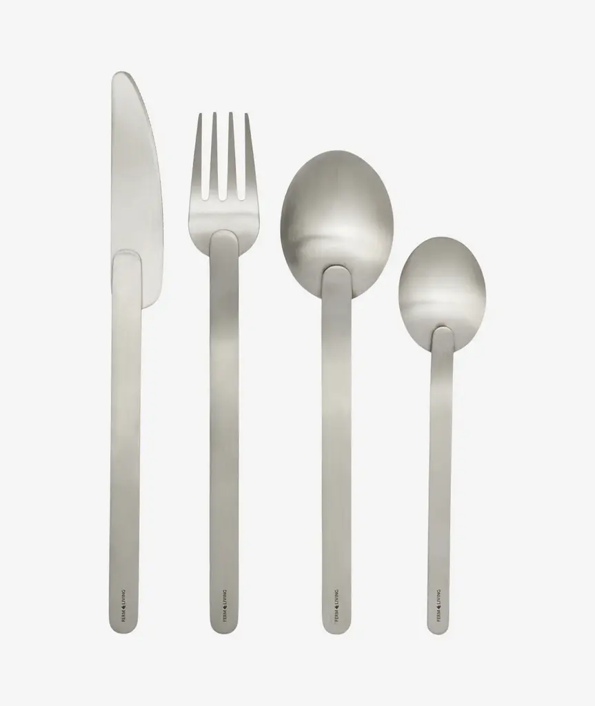 The Stelo Cutlery Set is a modern interpretation of Bauhaus principles, defined by its clean lines, geometric clarity, and minimal detailing. Named by blending the Italian word 'stelo', meaning ‘stem’, with steel, the cutlery pays homage to modernist design. Crafted from brushed stainless steel, each piece features an elongated, stem-like silhouette. Formed from flat, bent metal sheets with invisible welds, the cutlery’s head rests gently atop the slender handle, creating a refined, architectural presence on any table.