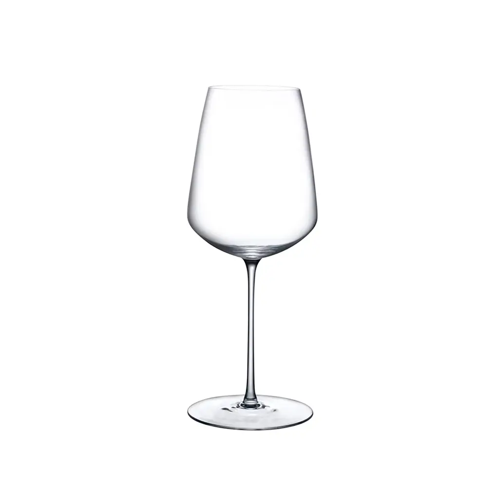 The Stem Zero collection by Nude, made using Nude’s signature ‘Ion Shielding’ Technology, is the world’s toughest, yet finest, lead-free crystal range. This tall and large glass allows for the heavier aromatic molecules to be freed and noticed, thanks to the “chimney” effect, which helps achieve an enhanced intensity of flavor. The towering shape directs the wine to the back part of the palate while also preventing the wine from centering on the teeth and gums, avoiding undesirable tannin astringency. The significant amount of wine poured on the back part of the tongue creates a perception of mellowness and depth, characteristic of powerful red wines. This is a special offer of 2 per box for this exclusive glass.