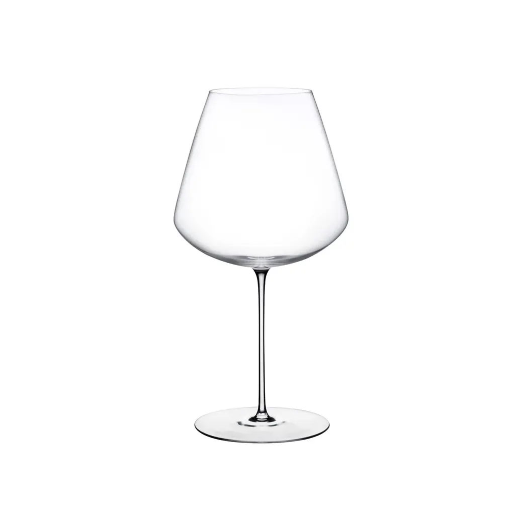 For an elegant night at home with friends and family or a chic dinner for two, the Stem Zero Elegant Red Wine Glass from Nude Glass is a fabulous addition to your drinkware collection, ready to serve the finest reds, while offering an incredible silhouette. Handcrafted from lead-free crystal using signature ion shielding technology, this red wine glass remains incredibly strong all while balanced on an exquisitely thin stem. A generous bowl and tapered lip are accented by a crystal-cut edge, allowing you to get the most out of every bottle. Highlights