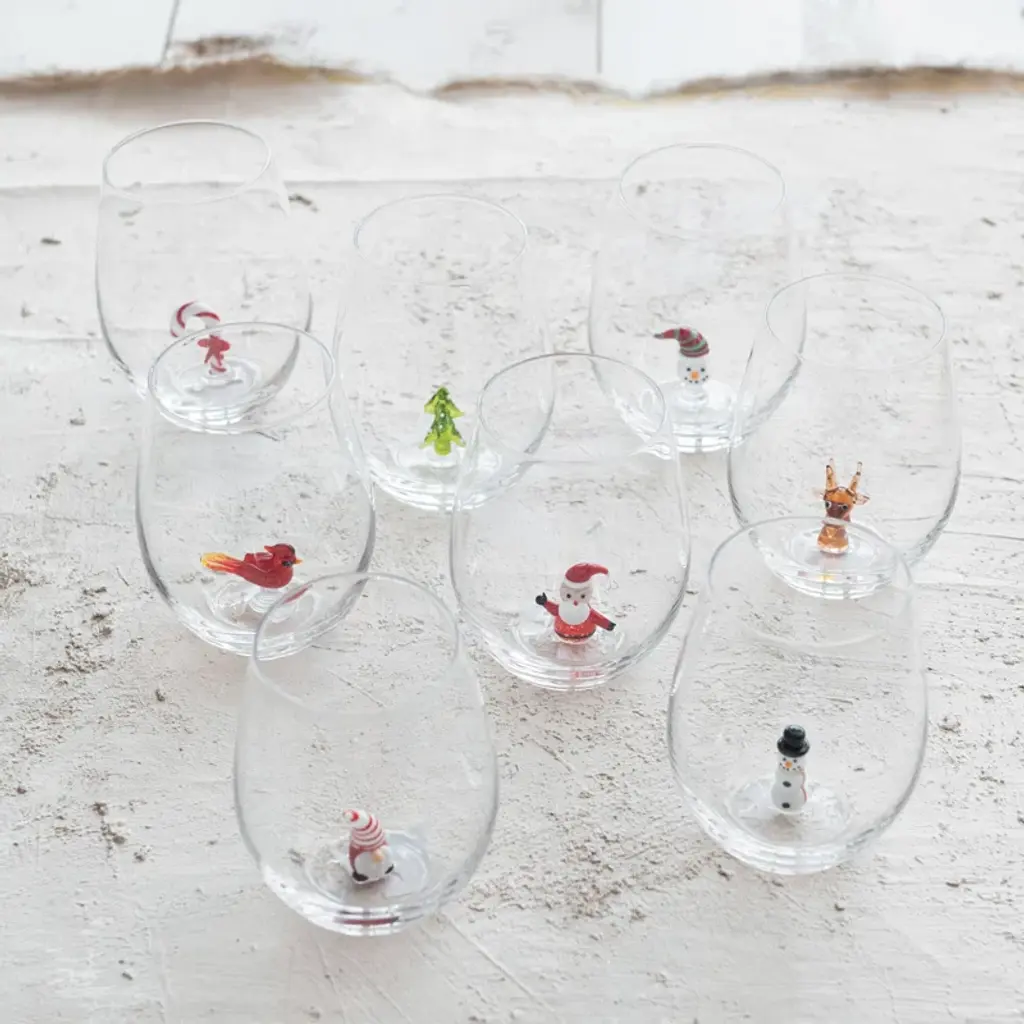 Stemless Wine Glass With Holiday Figure