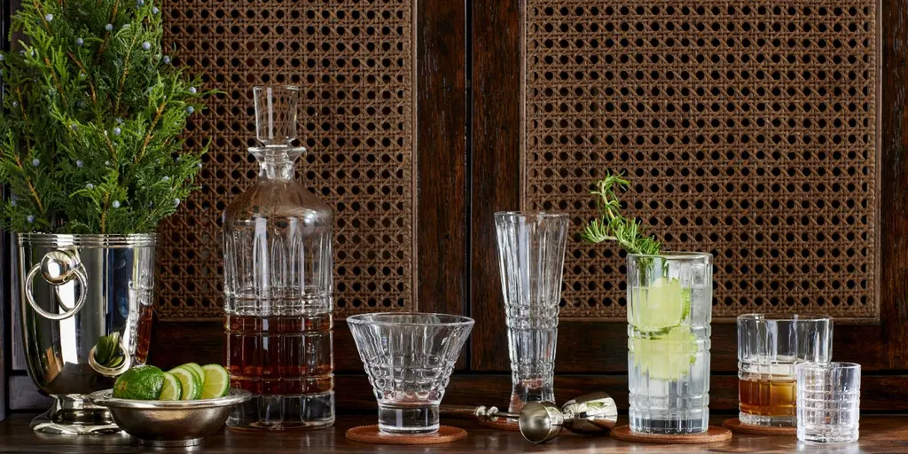 Add polish to cocktail hour with these smart-looking glasses. Inspired by our popular Stewart collection, they are faceted with a similar plaid pattern for plenty of sparkle in hand and on the shelf. A distinctive and elegant essential for the home bar, they also make a great gift for the mixologists in your life.