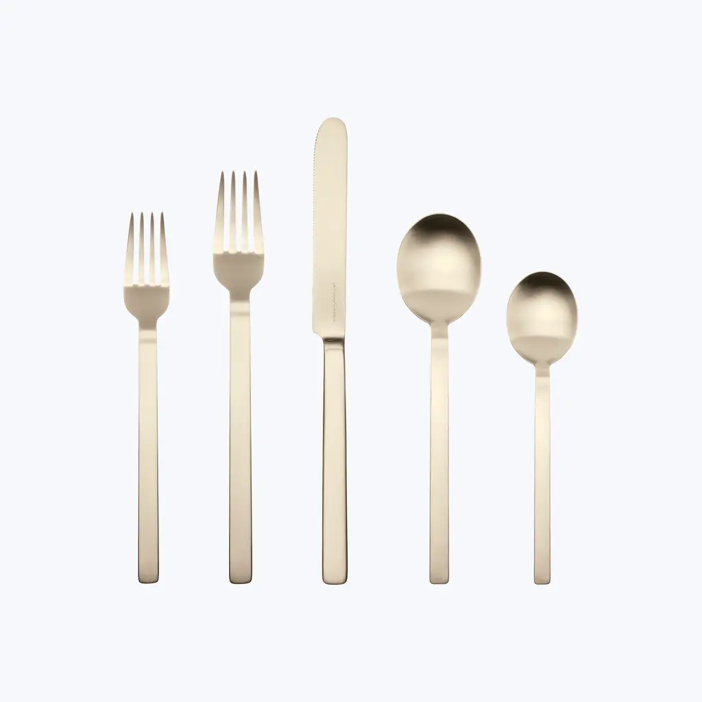 Stile Flatware is made of the highest quality 18/10 steel, 4 mm thick, very durable, and incredibly ergonomic for dinner parties and everyday use. Knives have double serration for durable sharpness. The perfect balance between style ad function, this high-quality Italian flatware brings elegance to the table without sacrificing functionality. Dishwasher and food safe. Created in 1947, Mepra is a family-owned and operated company with a worldwide presence in flatware, cookware, and stainless-steel products. Today, Mepra flatware and kitchenware appear on the tables of the most prestigious hotels, award-winning restaurants, and artisanal-centered homes. Bring the magic of three generations worth of Italian traditions, designs, and lifestyles into your kitchen and dining room today. Stainless Steel plating features a special vintage process that gives it a rustic, warm, and elegant appearance while still being durable and inoxidizable coating. Winners of the 2020 Good Design Award, the Oro Nero, Champagne, Oro, and Ice Oro Collections are perfect for the most refined and stylish homes with their pure lines and harmoniously light forms. Ice Bronze, Champagne Ice, Ice, and Ice Oro Nero are coated with a PVD Titanium Coating that is tested and guaranteed for more than 3000 washes in a commercial dishwasher. The special Titanium Plating was originally developed by NASA, resulting in a durable and inoxidizable coating like non-other. 20 Piece Cutlery Set includes (4) Dinner Forks, (4) Dinner Knives, (4) Salad Forks, (4) Soup Spoons, and (4) Coffee/Teaspoons