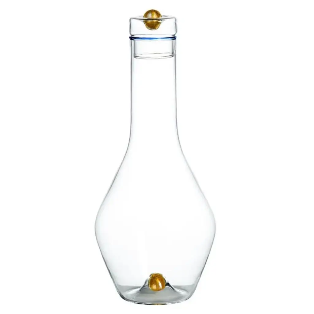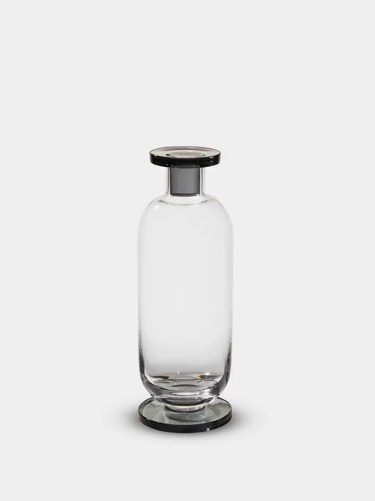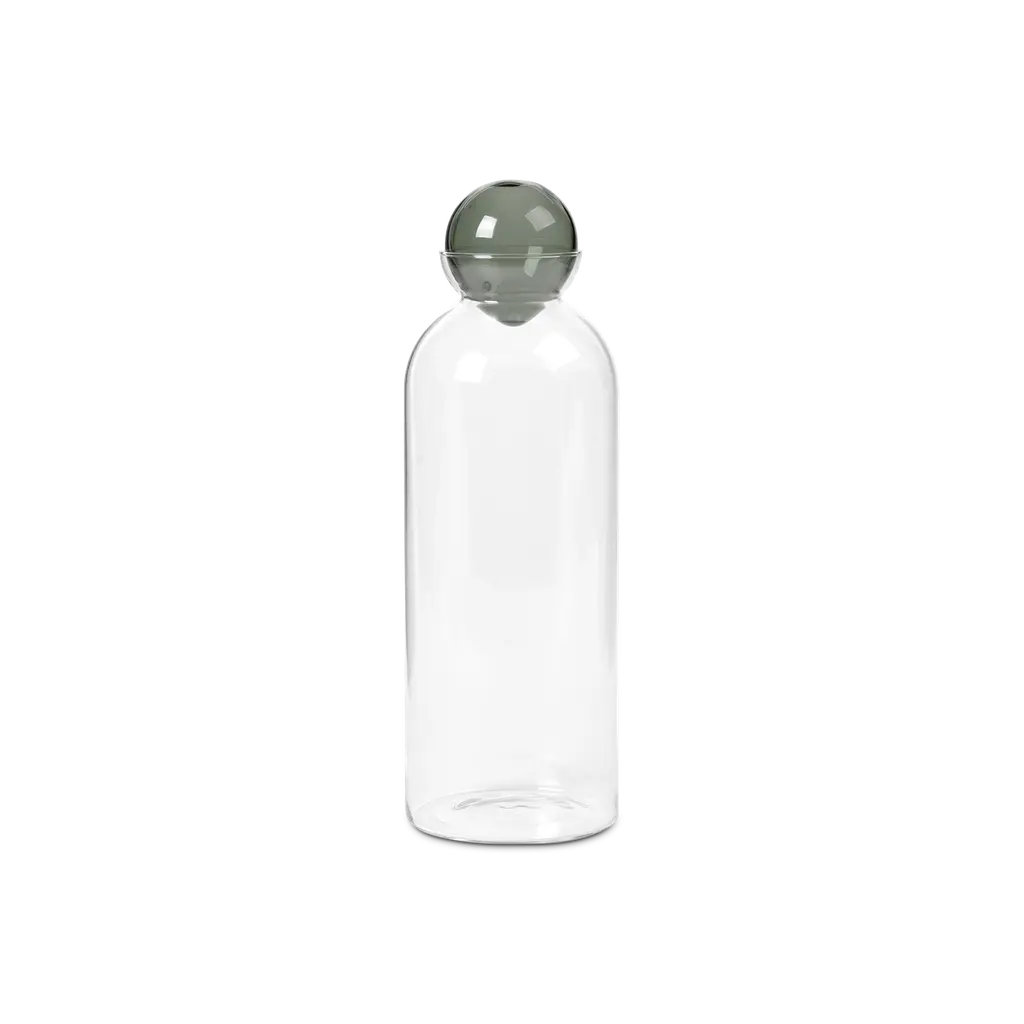 Our Still series of glass tableware looks to traditional tea-making rituals, simplicity and balance to create everyday objects rooted in beauty and function. The sphere-shaped colored glass stopper sits like a bubble of air on top of the mouth-blown carafe, designed to elegantly hold water, juice or other liquids. Made for everyday use, pair it with the matching glasses to create a stylish set.