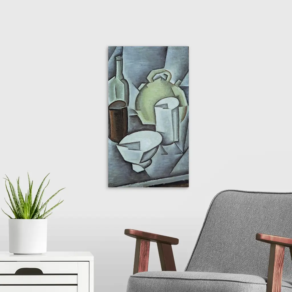 Still Life with a Bottle of Wine and an Earthenware Water Jug, 1911 wall art for home and office decor. Discover canvas art prints, photos, mural, big canvas art and framed wall art in GreatBigCanvas.com's varied collections.