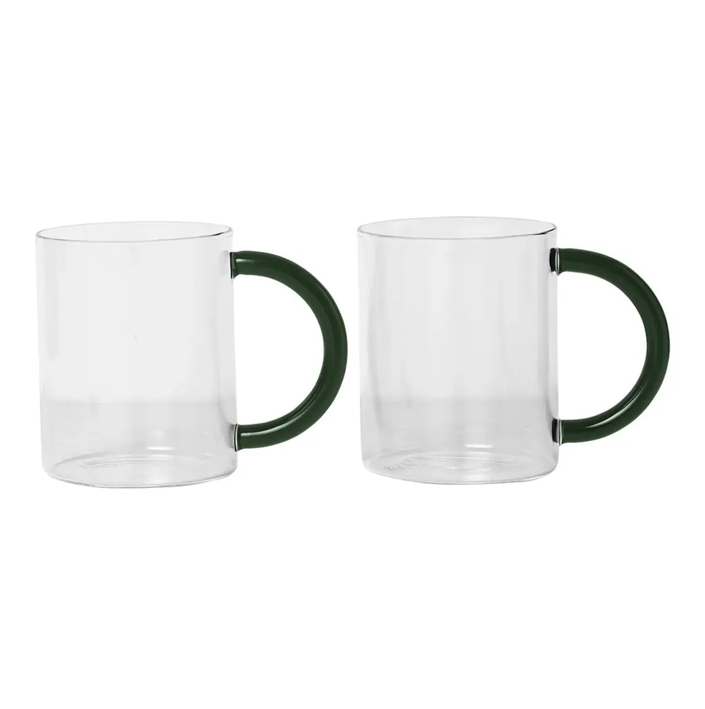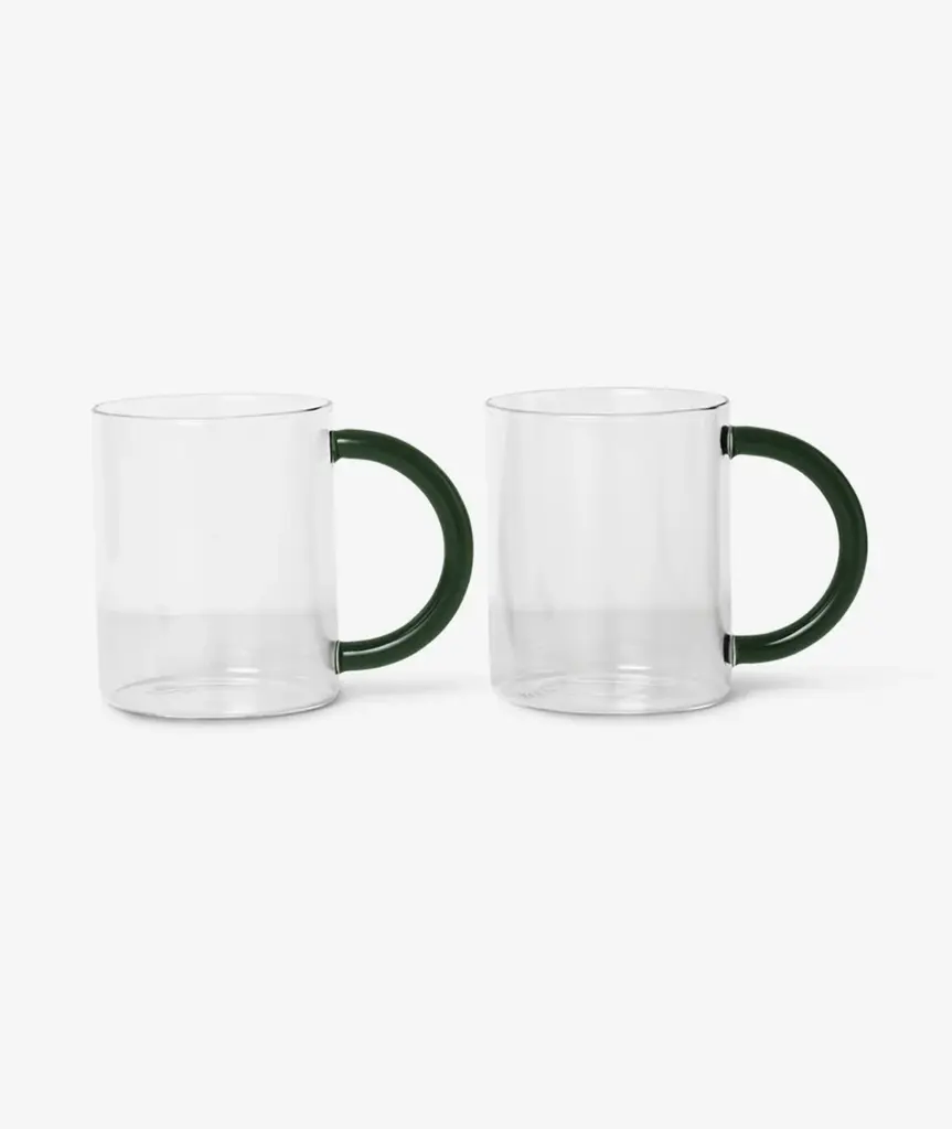 Enjoy a quiet moment with this set of mugs made of mouth-blown glass, forming a lovely match to our Still Teapot. The large rounded handle is made of solid glass too, but in a contrasting color to the rest of the mug. They come as a set of two in the same colorway and are, of course, dishwasher-safe.