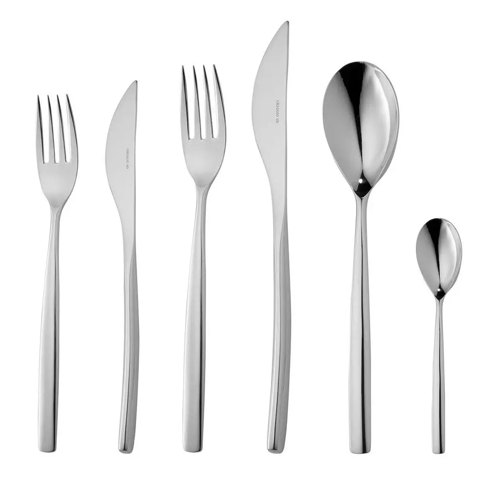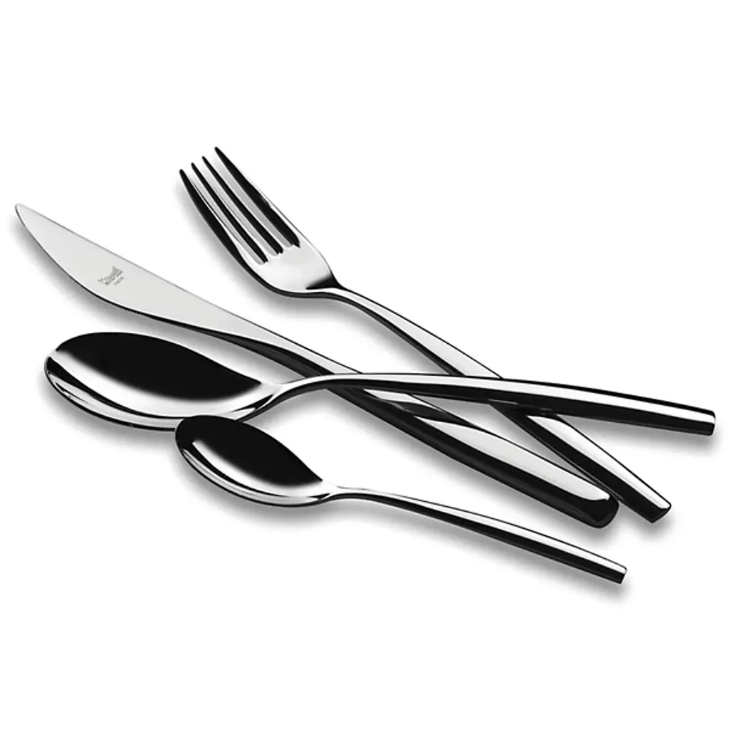 The Stiria Flatware, Set of 20 by mepra designed by Studio Tecnico Mepra, brings elegance and sophistication to any dining occasion. Crafted from premium, substantially thicker 18/10 stainless steel, each piece radiates durability and refinement. The sleek, polished finish of the forks, knives, and spoons is complemented by the precision-machined prongs of the forks, ensuring exceptional performance with every use. The finely-tooled serration on the knives guarantees effortless cutting, while the dishwasher-safe design adds practicality to its luxurious form. The Stiria set’s timeless aesthetic and modern lines make it a perfect addition to any dining table, whether for formal dinners or casual meals, elevating your dining experience with every meal. Its sophisticated design will seamlessly complement both traditional and contemporary table settings, making it a versatile and cherished piece in your kitchen.