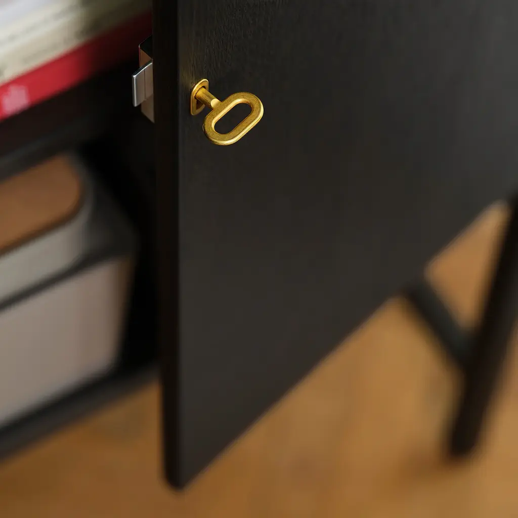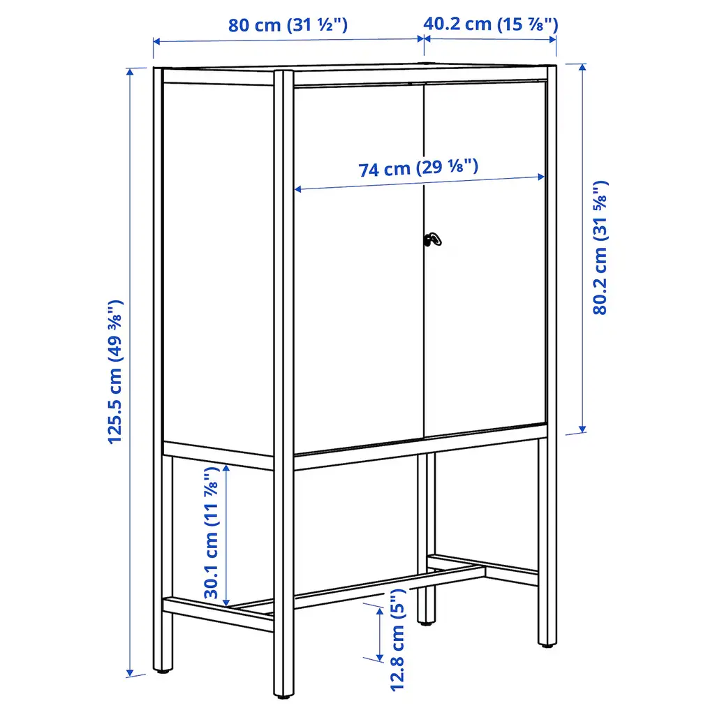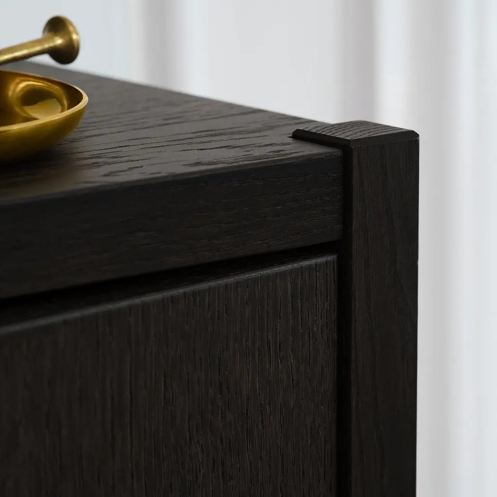 STOCKHOLM 2025 Cabinet with 2 doors - oak veneer/dark brown 31 1/2x15 7/8x49 3/8 ". The cabinet stands firmly in place – also on uneven floors since it has adjustable feet. With the soft-closing function your doors close silently and softly.