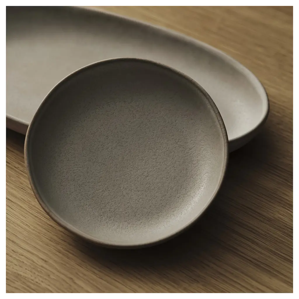 STOCKHOLM 2025 Serving plate, set of 2 - gray. These serving dishes are perfect for serving various side or small dishes – the food will look extra beautiful against the grey finish. The stoneware with a matte grey finish features a stone-like surface with a rustic and irregular look.