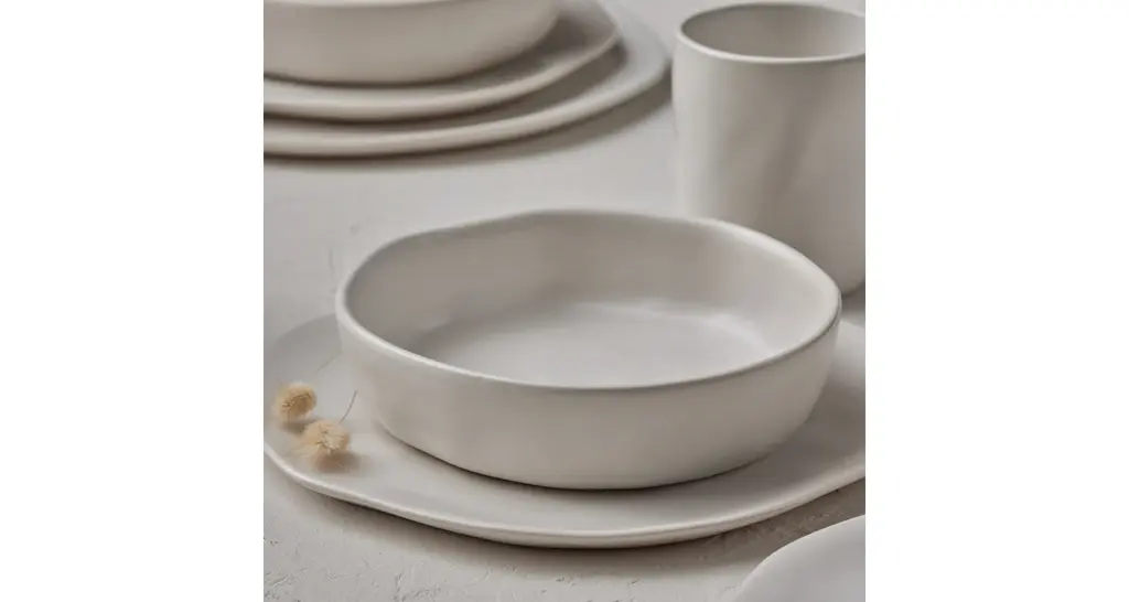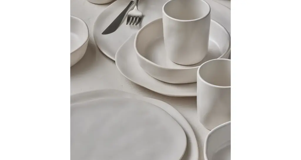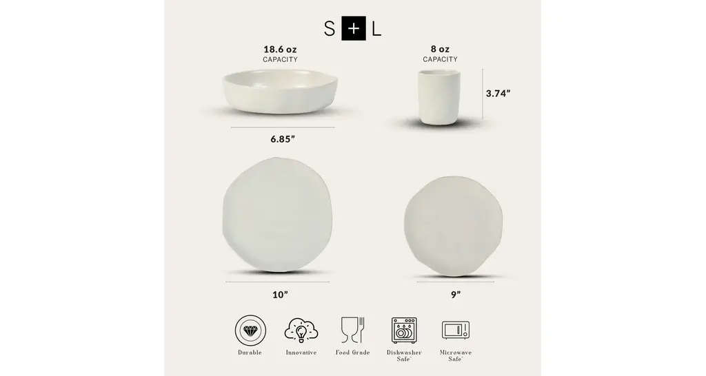 Stone by Mercer Project HEKONDA Collection is composed of stoneware dishes, which have an organic round shape and uneven surfaces. The collection gives an earthy and rustic feel to your table setting. The set includes salad plates (9-inch), dinner plates (11-inch), bowls (18.6 fl.oz) and cups (8 fl.oz). Despite being difficult to stack, the pieces give a handmade illusion and will beautify your tablescape. HEKONDA is both microwave and dishwasher safe for convenience but should still be handle with care. Complement this set with table accessories such as a tablecloth, placemats or chargers to protect the surfaces as the bottom of the collection is unglazed. The dishes possess an irregular edge for a pleasingly rustic aesthetic. Come and join the Mercer Project family with this one of kind dinnerware design.