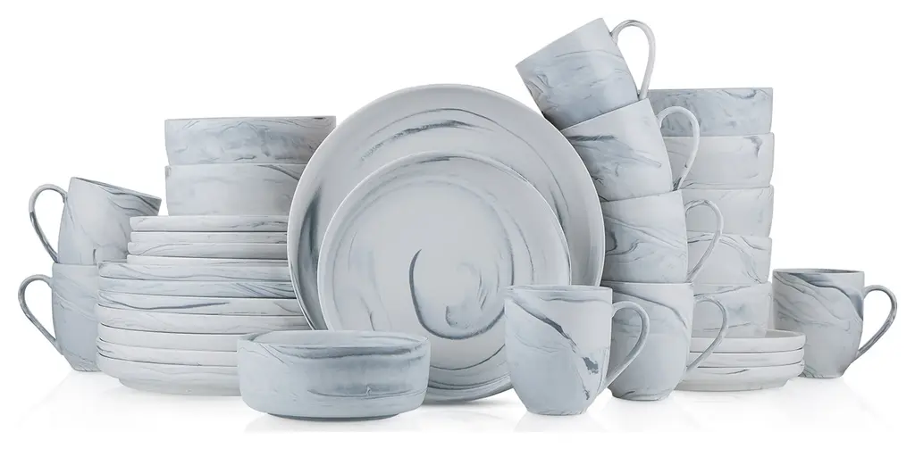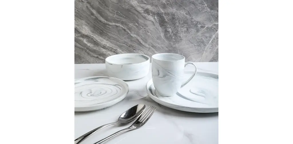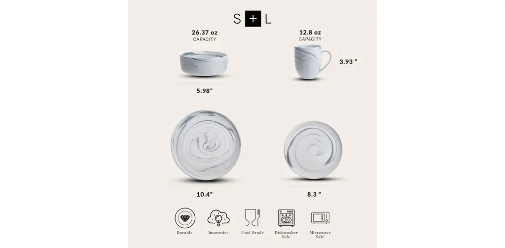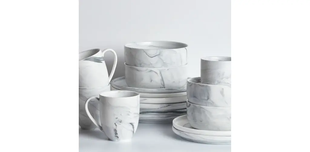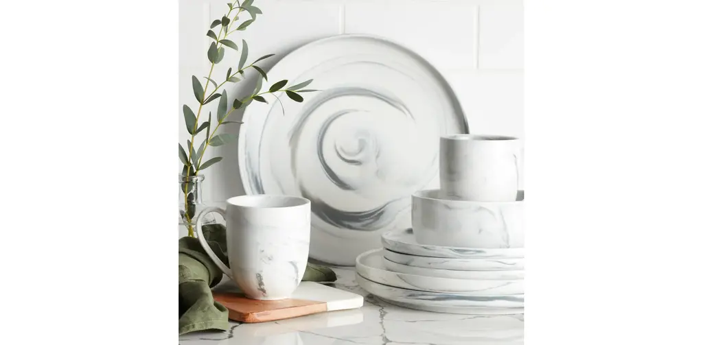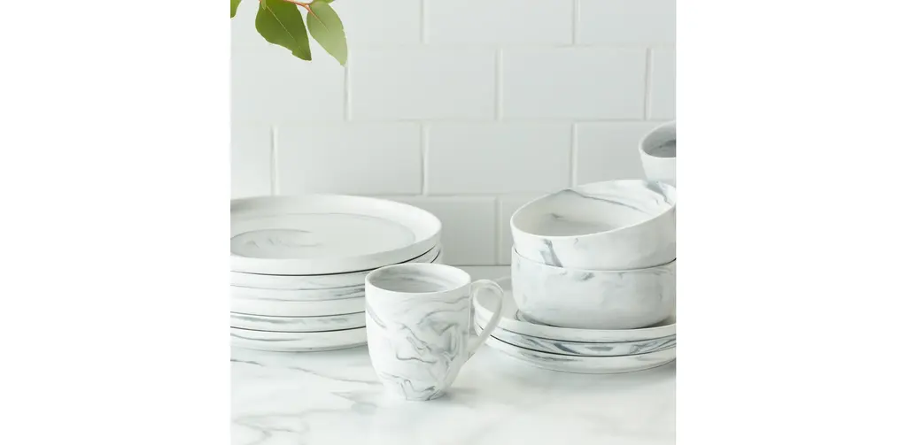Dare to delight your diners with Brighton, Stone Lain's whimsical dinnerware set that reminds us that fashion can be fun. In this set, contemporary shapes pair with a memorable marble pattern (available in light gray and pastel pink) for an overall look that is both playful and chic. The collection comes complete with dinner plates (10.5 inches), salad plates (8.25 inches), bowls (26.3 fl.oz) and 4 mugs (12 fl. oz.).