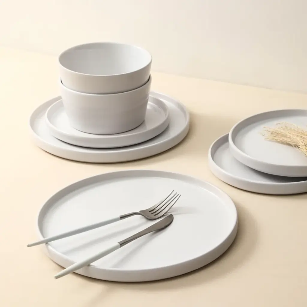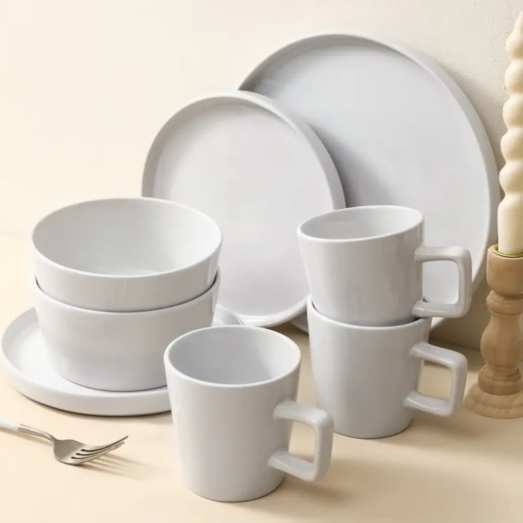 Make a loud statement with your dishes. The Stone Lain 16 Piece Stoneware Round Dinnerware set in glossy white is unforgettable. The perfect balance between trendy cool and modern classicism, these round plates, bowls and cups turn every table into a hip party. It includes 4 large round 10.25” dinner plates, 4 round 7.5” salad plates with a unique lipped edge, 4 deep round 5.5” Asian-style bowls and 4 earthy 12 oz cups. These home essentials are expertly crafted, artfully designed, and reminiscent of celebrity after-parties. 100% dishwasher and microwave safe for easy cleaning and durability. These pieces go great in a kitchen, dining or outdoor setting. Lay out your most stylish tablecloth, cutlery and stemware, and let the Stone Lain 16 piece stoneware dishes set do the rest.